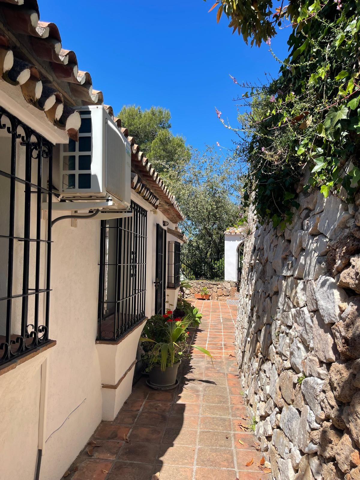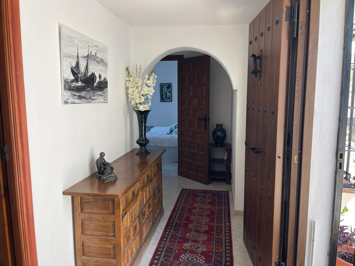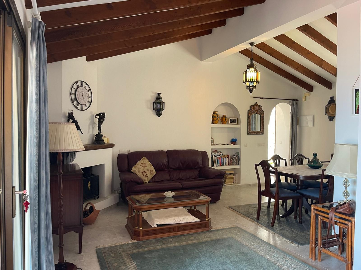 This bungalow-style villa retains its authentic Andalusian charm, with high vaulted ceilings, exposed wooden beams, and traditional Spanish tiling throughout. Thoughtfully maintained and updated, the property boasts renovated en-suite bathrooms, a welcoming lounge and dining area with feature fireplace, and a delightful conservatory with fully retractable doors opening onto a generous terrace with breathtaking panoramic views stretching from the coastline to Fuengirola, La Cala, and up to the majestic Mijas Mountains.