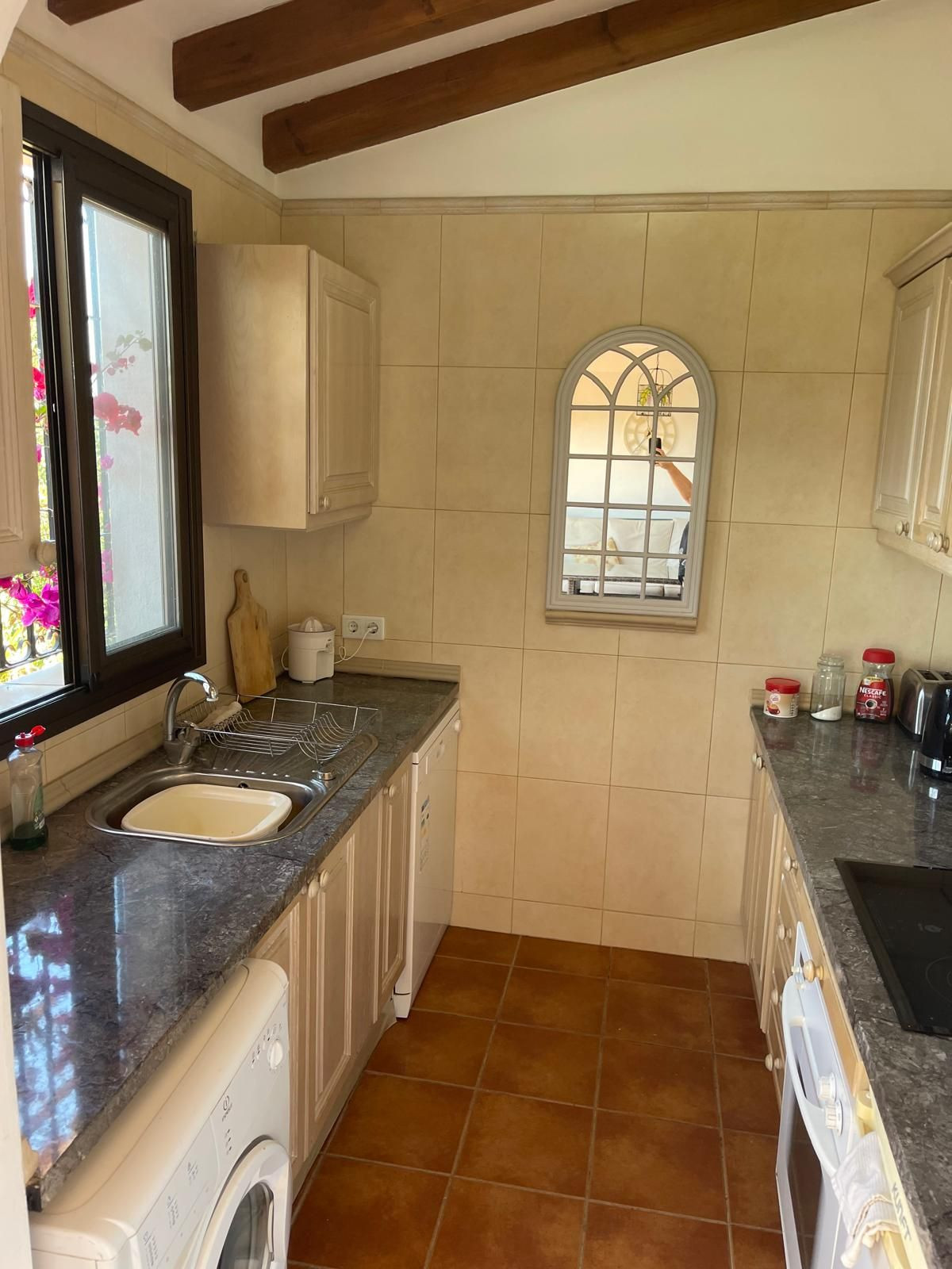 Rustic Spanish Charm – vaulted ceilings, wood beams, and character tiling
