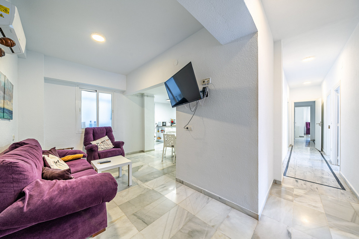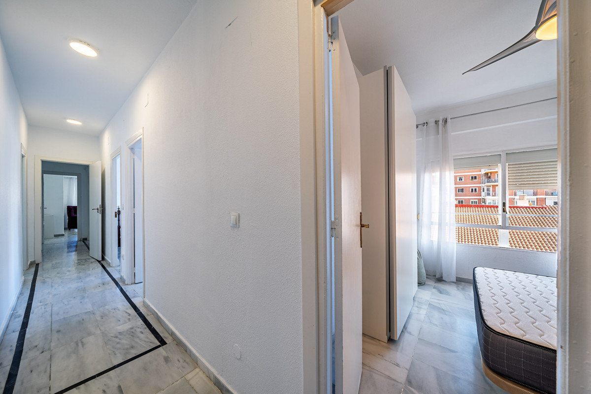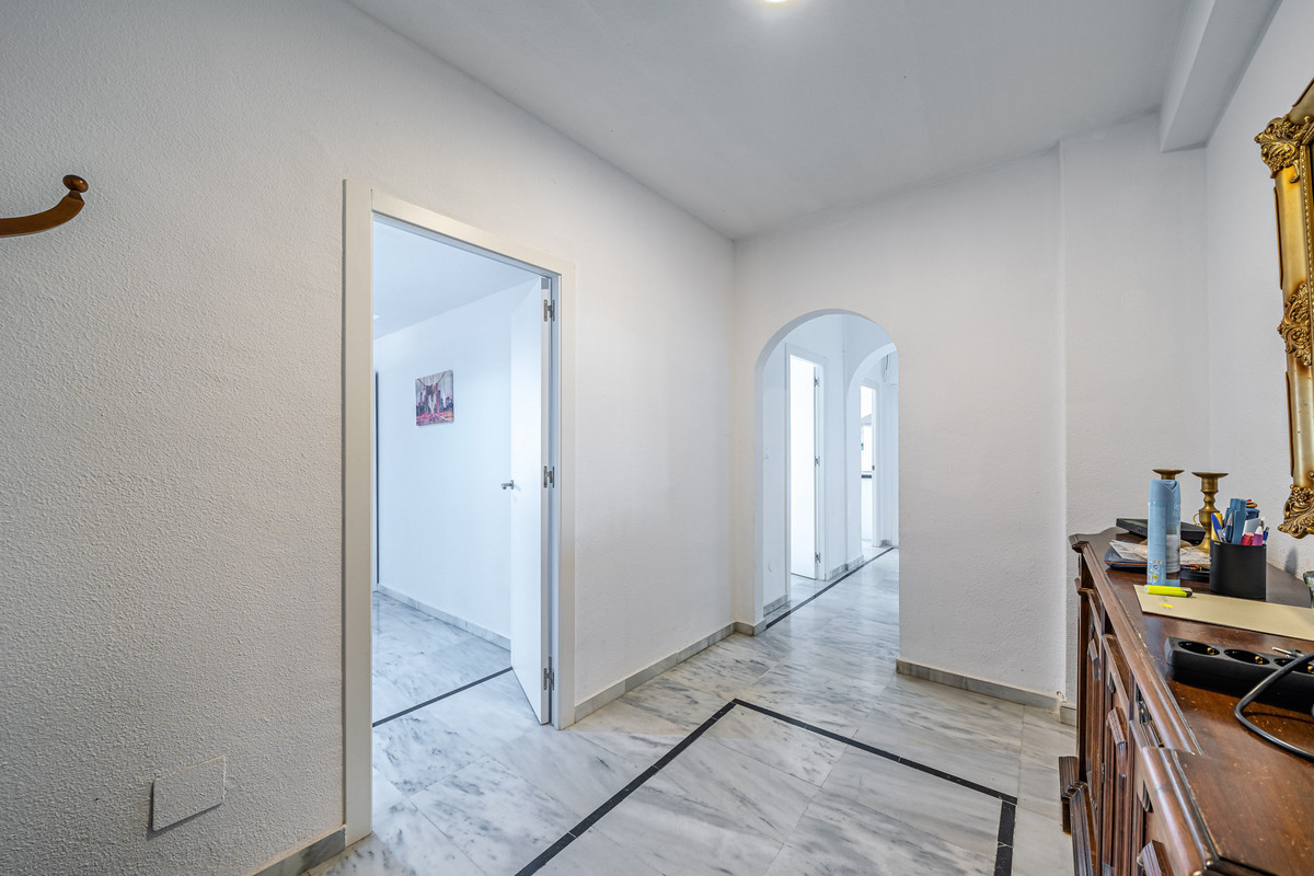 Perched on the eighth floor of an 11-storey building, this remarkable 6-bedroom flat offers an exceptional living experience in the coveted neighborhood of La Malagueta. With magnificent sweeping views of the sea, the beach promenade, the port and the quay Muelle Uno, this residence truly exemplifies coastal elegance.