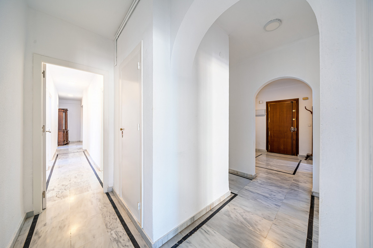 The flat consists of 6 bedrooms, 3 bathrooms, a kitchen and a living room that connects to a beautiful terrace. Bathed in natural light, thanks to its desirable south-eastern orientation, the flat exudes a radiant ambiance and presents limitless possibilities for personalized renovations, allowing you to shape it into your dream home.