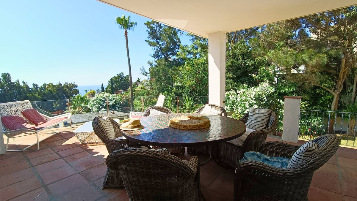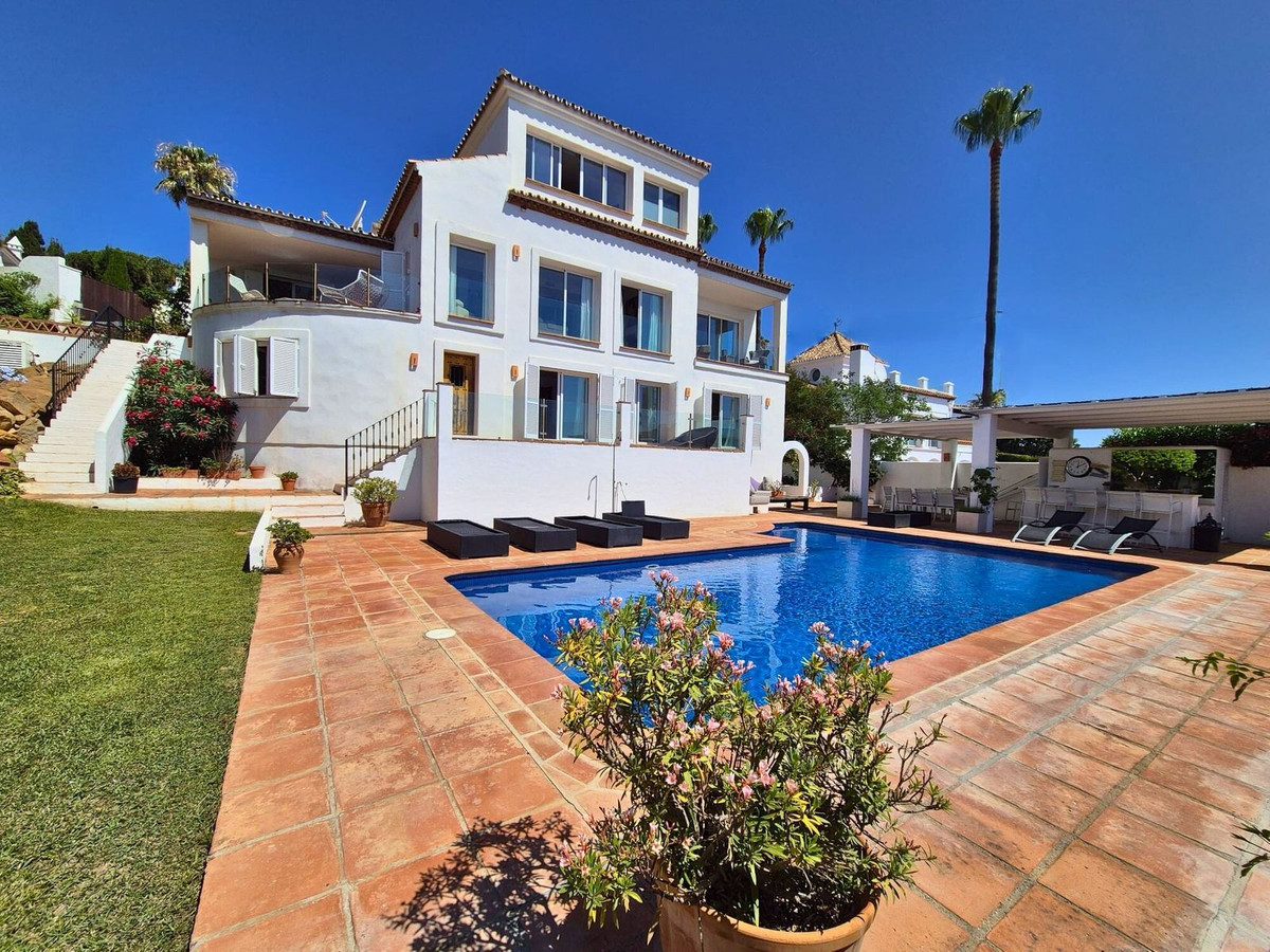 Discover this exceptional classical-style villa that perfectly blends elegance, comfort, and breathtaking sea views, ideally located in the prestigious residential area of La Paloma in Manilva.