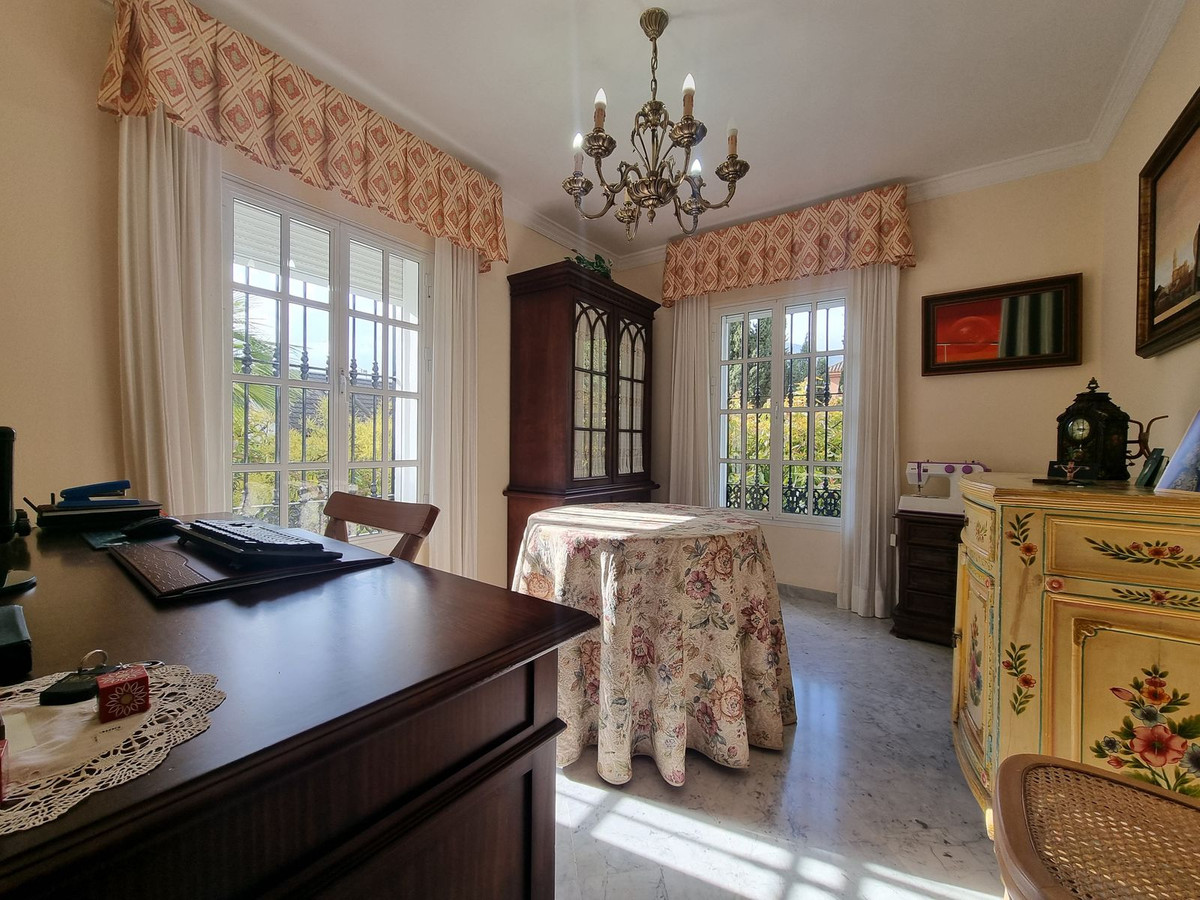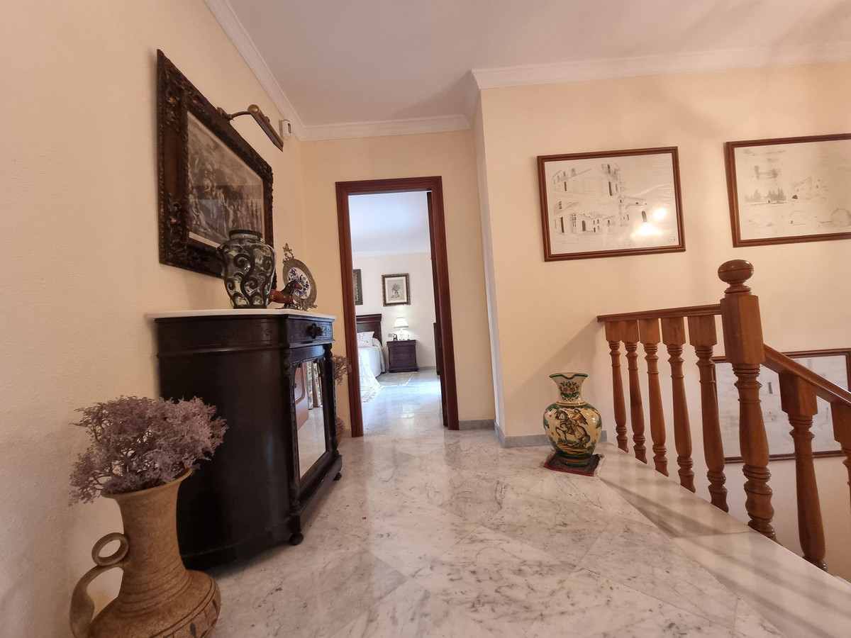 • Ground floor: beautiful entrance hall, large living room with fireplace, and access to a front terrace with views. The dining room also connects to a pleasant rear terrace with direct access to the pool and gardens. This floor also includes an independent kitchen, a full bathroom, and one bedroom.