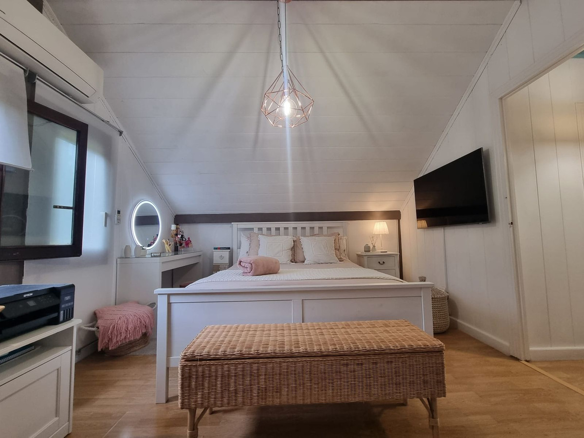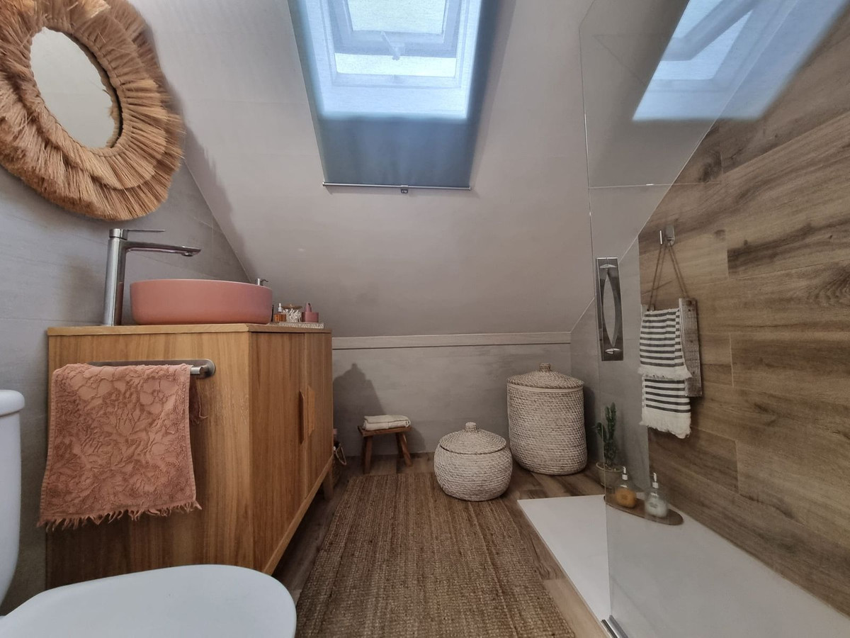 • Top floor: two bedrooms with vaulted ceilings and an additional bathroom.
