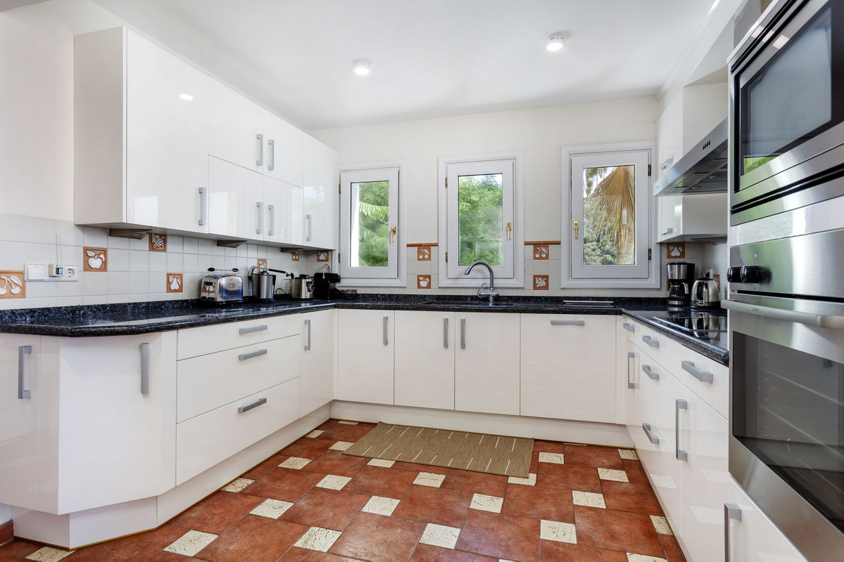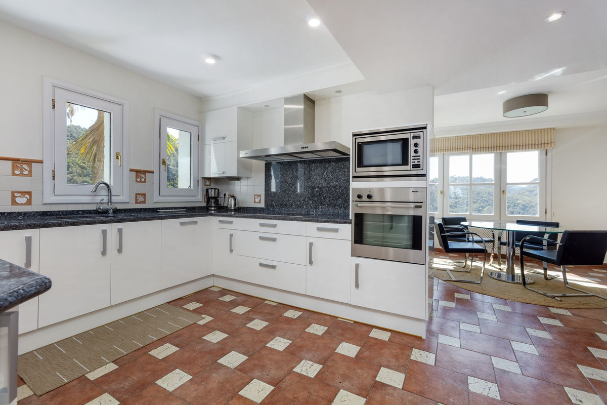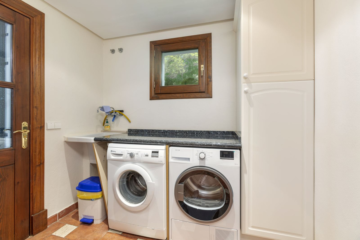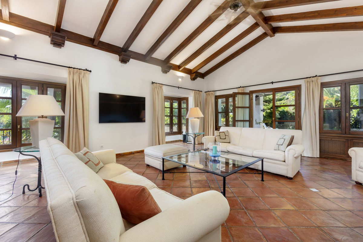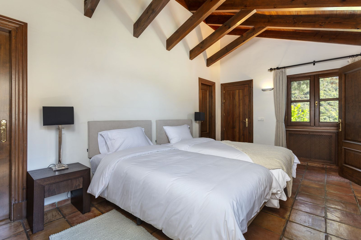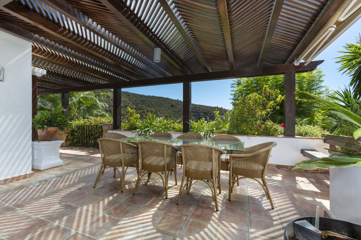 Electric gates lead you into the driveway which has parking for several cars and also a double garage. There is a utility room plus large kitchen that opens up into the breakfast room. huge dining room which leads into the impressive sitting room with high beamed ceilings and cosy fireplace - perfect for winter evenings. Opening up from the sitting room is a huge terrace and garden area with large pool which is heated - Ideal for all lovers of swimming on a winters day! The garden offers total privacy and total panoramic views accross the valley and village and to the protected forest areas and super exclusive La Zagaleta.