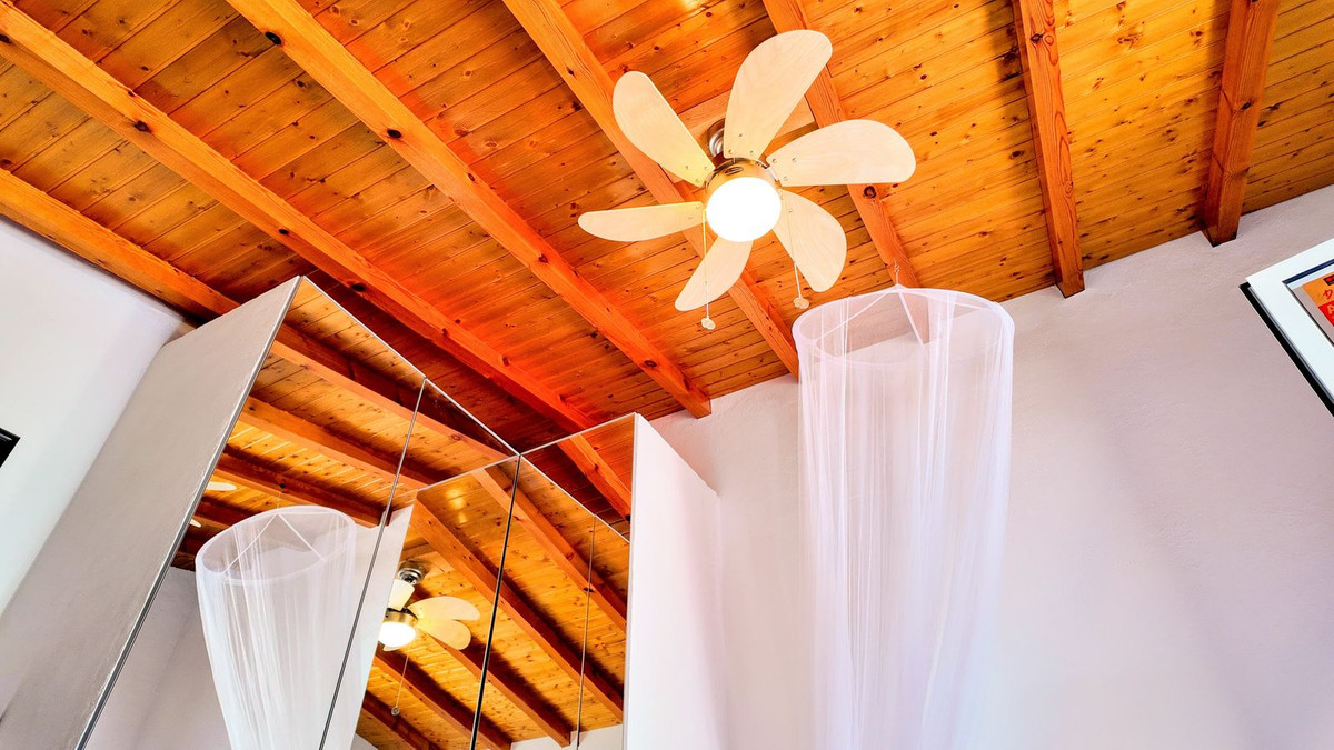 Upstairs, two additional bedrooms each have their own terraces, offering beautiful views of the valley and the pool area. The second bedroom has direct views of the pool. Additionally, there's a laundry room and a storage area for extra convenience.