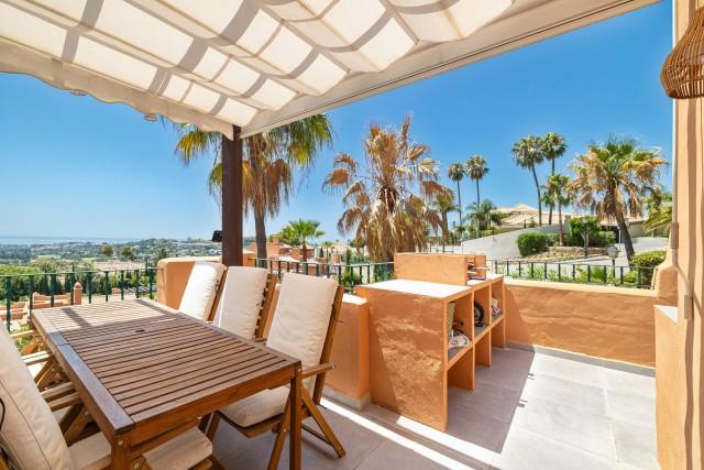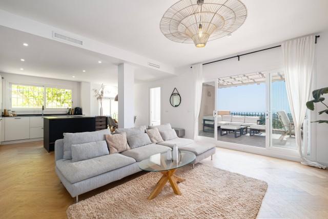 Bienvenue dans ce magnifique penthouse de 3 chambres offrant une vue panoramique sur la mer, niché dans le prestigieux quartier de Nueva Andalucía, à Marbella. Située au cœur de la prestigieuse Vallée du Golf, cette résidence rénovée avec goût allie design scandinave contemporain et cadre naturel paisible. Dotée de parquet en chêne, d'un espace ouvert et spacieux et d'une abondante lumière naturelle inondée par de grandes fenêtres, cette maison respire l'élégance moderne.