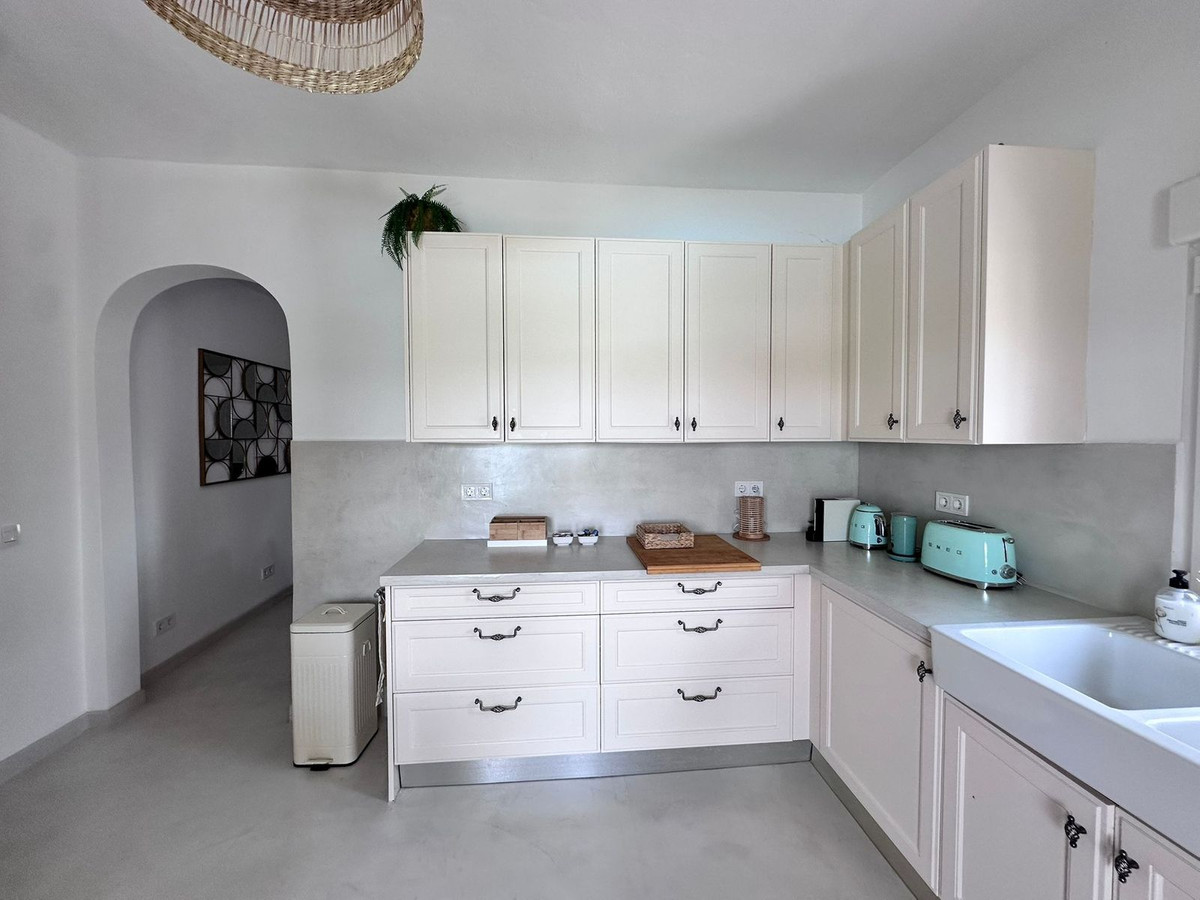 The house is set on a fully fenced plot of over 6300m² and it features plantation of olive trees, along with a large variety of fruit trees. The property has town water and connection to irrigation water.