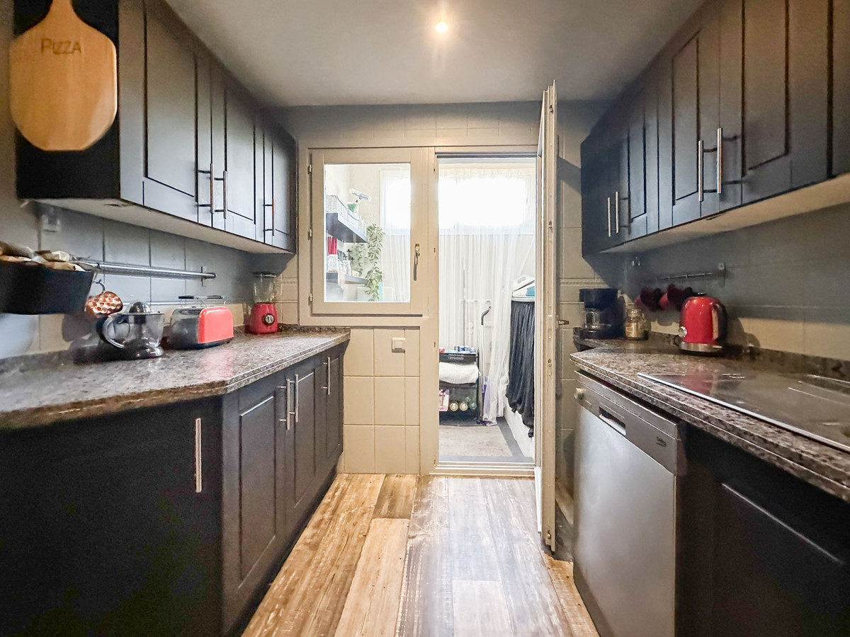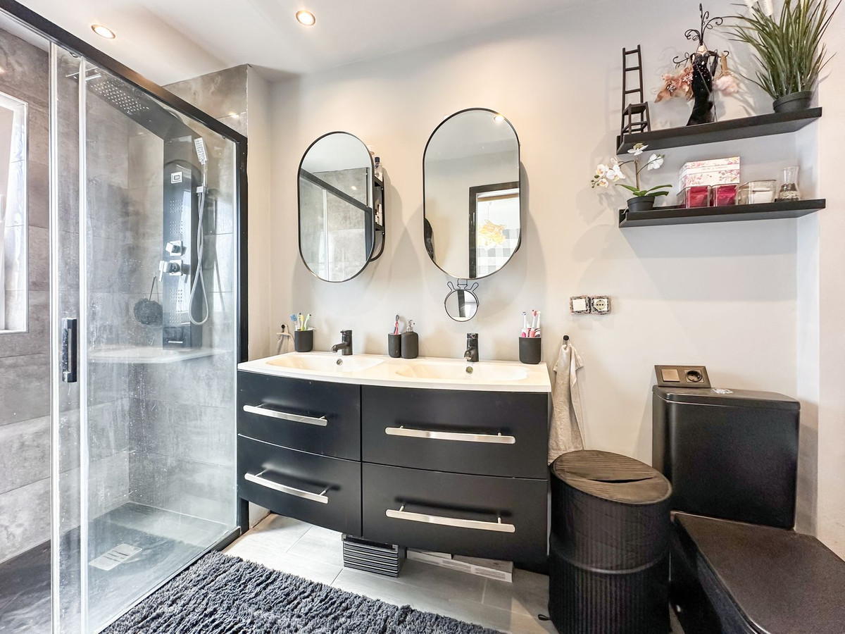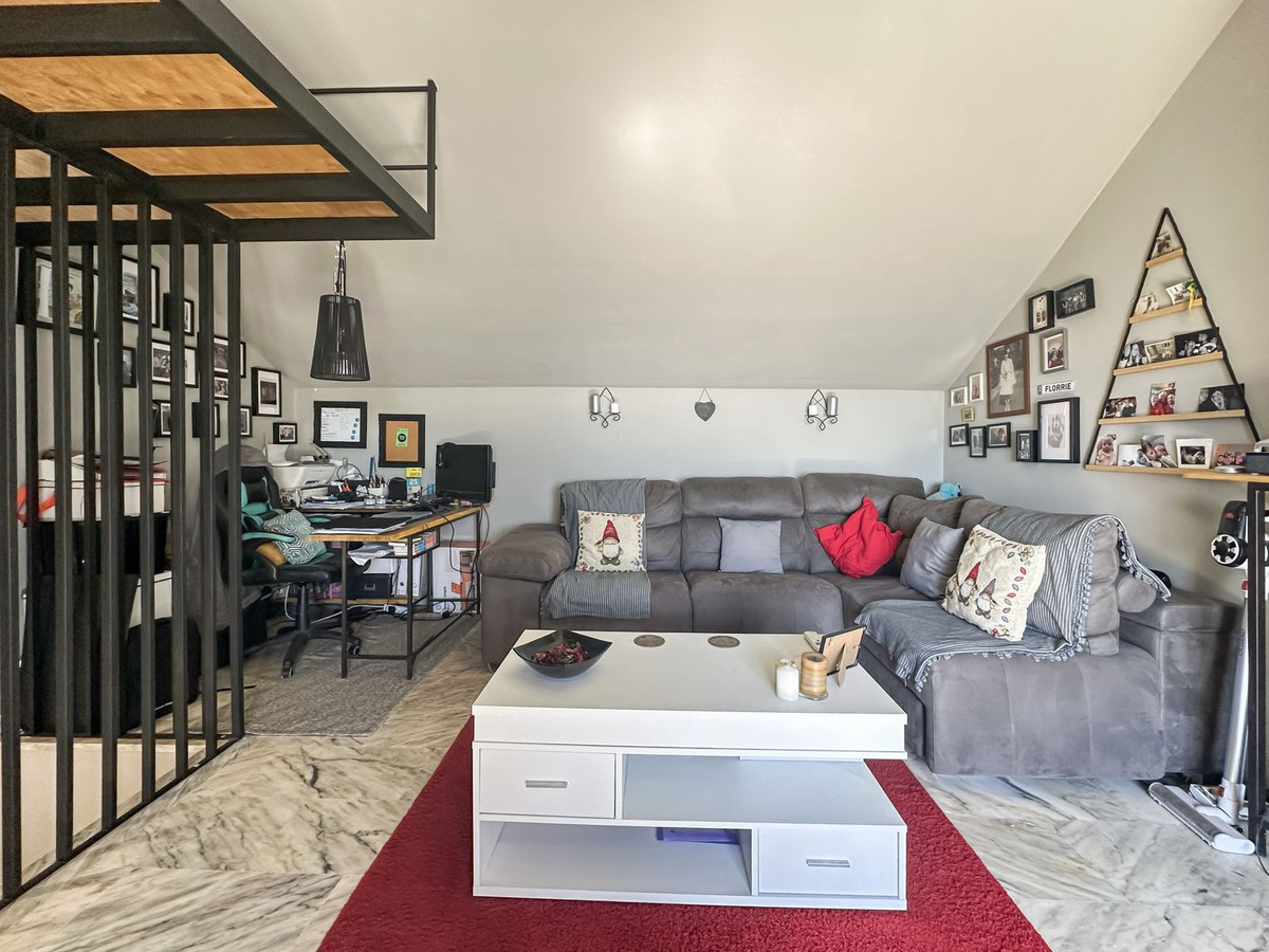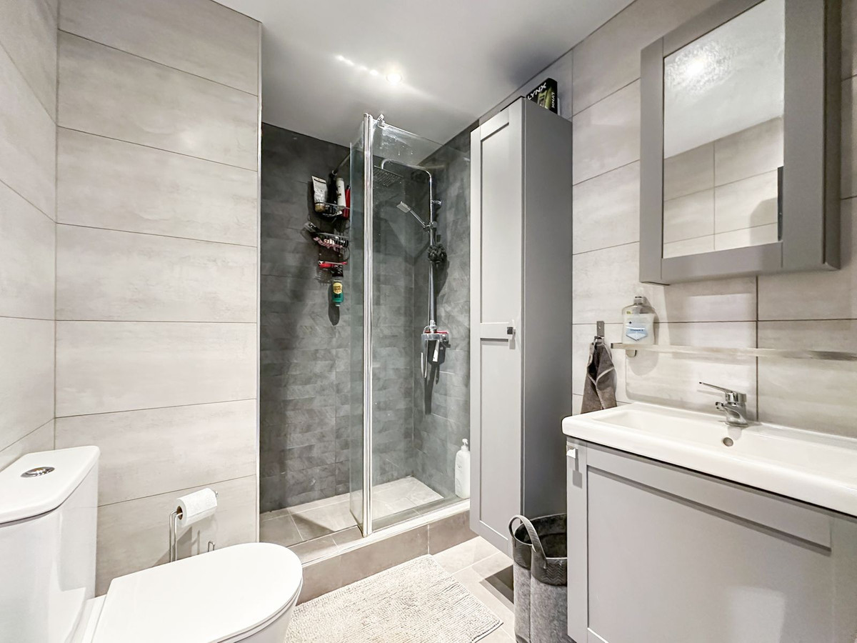 Main floor: Bright and spacious living room with access to a 30 sqm private terrace. Independent kitchen with separate laundry room and guest toilet.