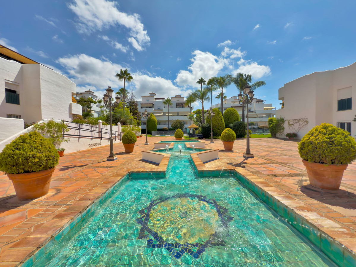 Within pretty landscaped gardens which include a lovely Andalusian-style water feature and large swimming pool.