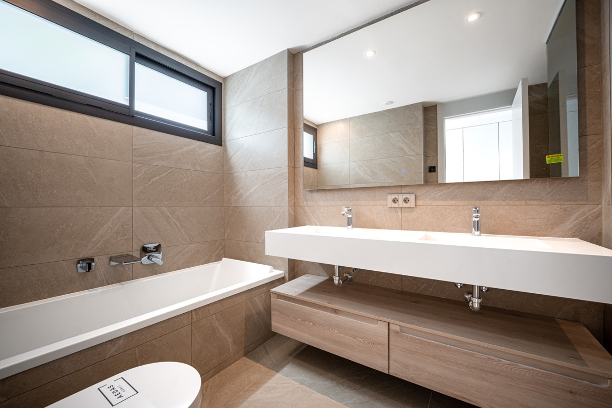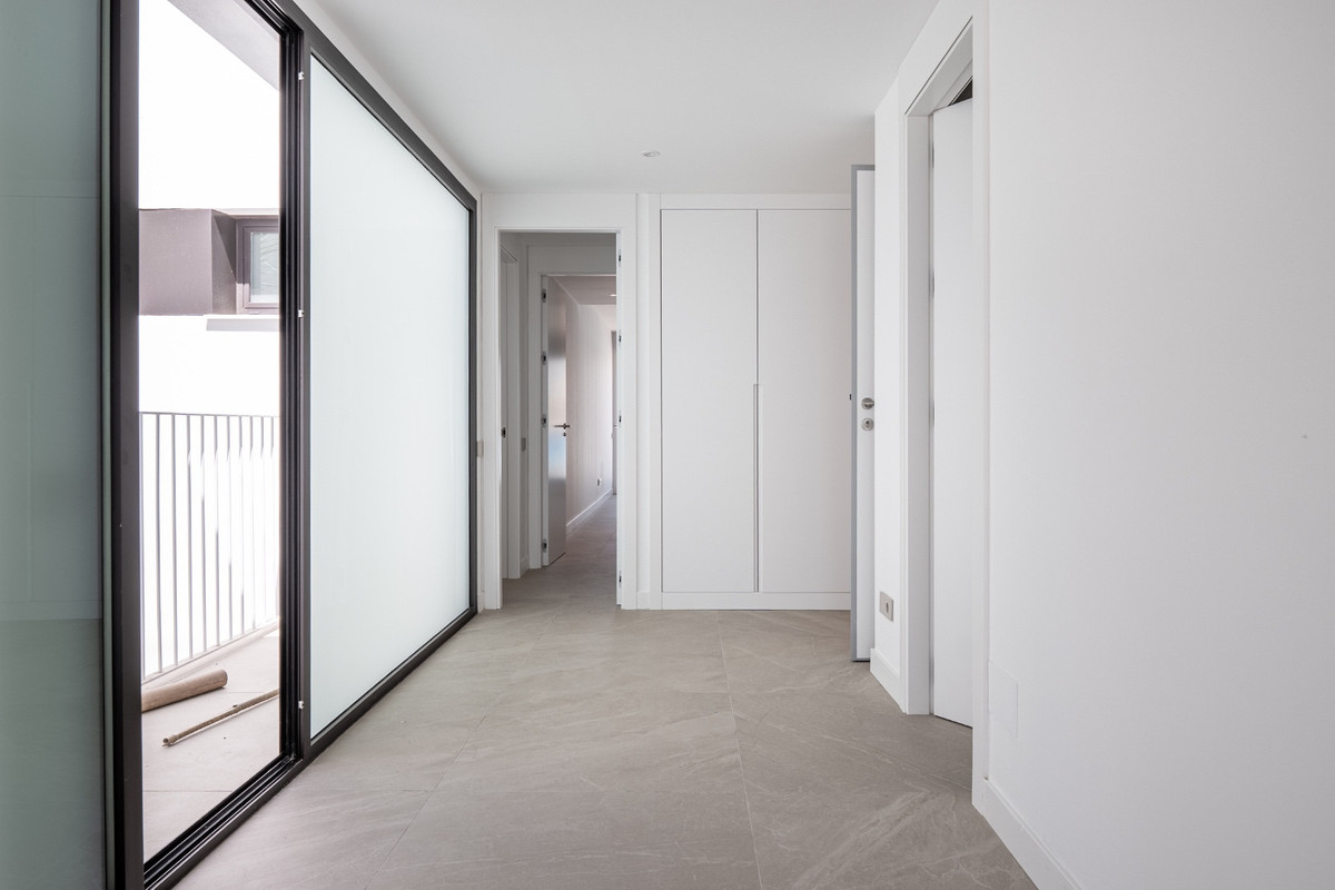 Penthouse Alma is a brand-new duplex home in a secure gated community in Marbella East. It has two ensuite bedrooms, a guest bathroom, and an open-plan living space that connects the kitchen, dining, and lounge areas. Floor-to-ceiling windows fill the home with natural light and open onto a large terrace with views of the sea, mountains, and golf course.