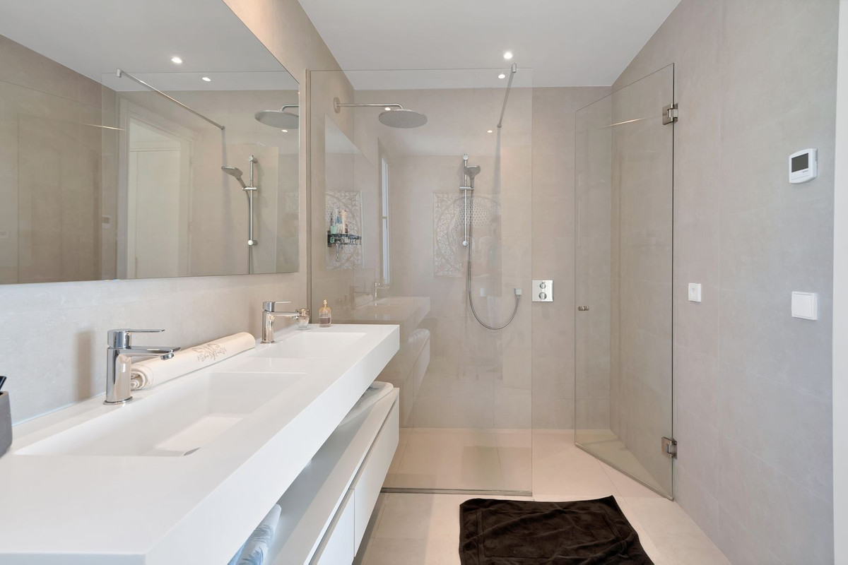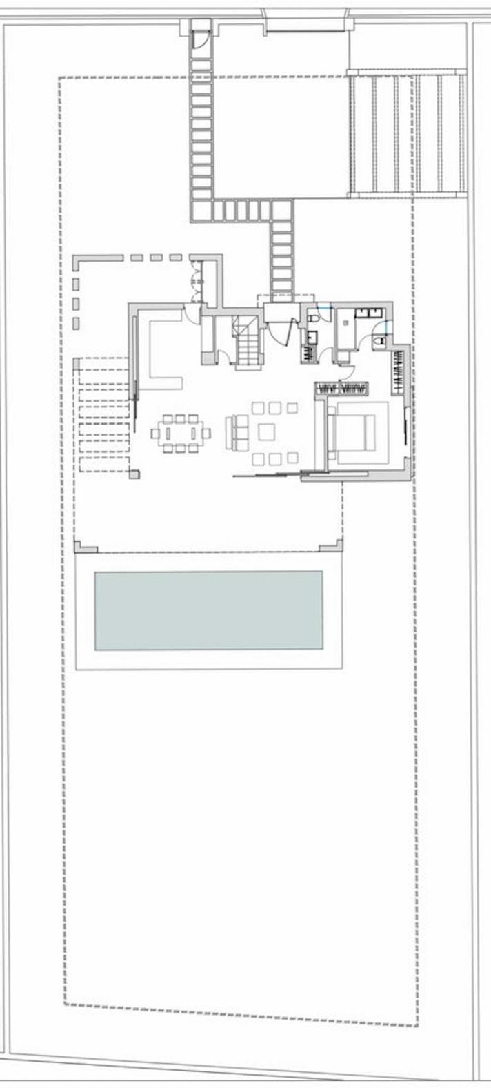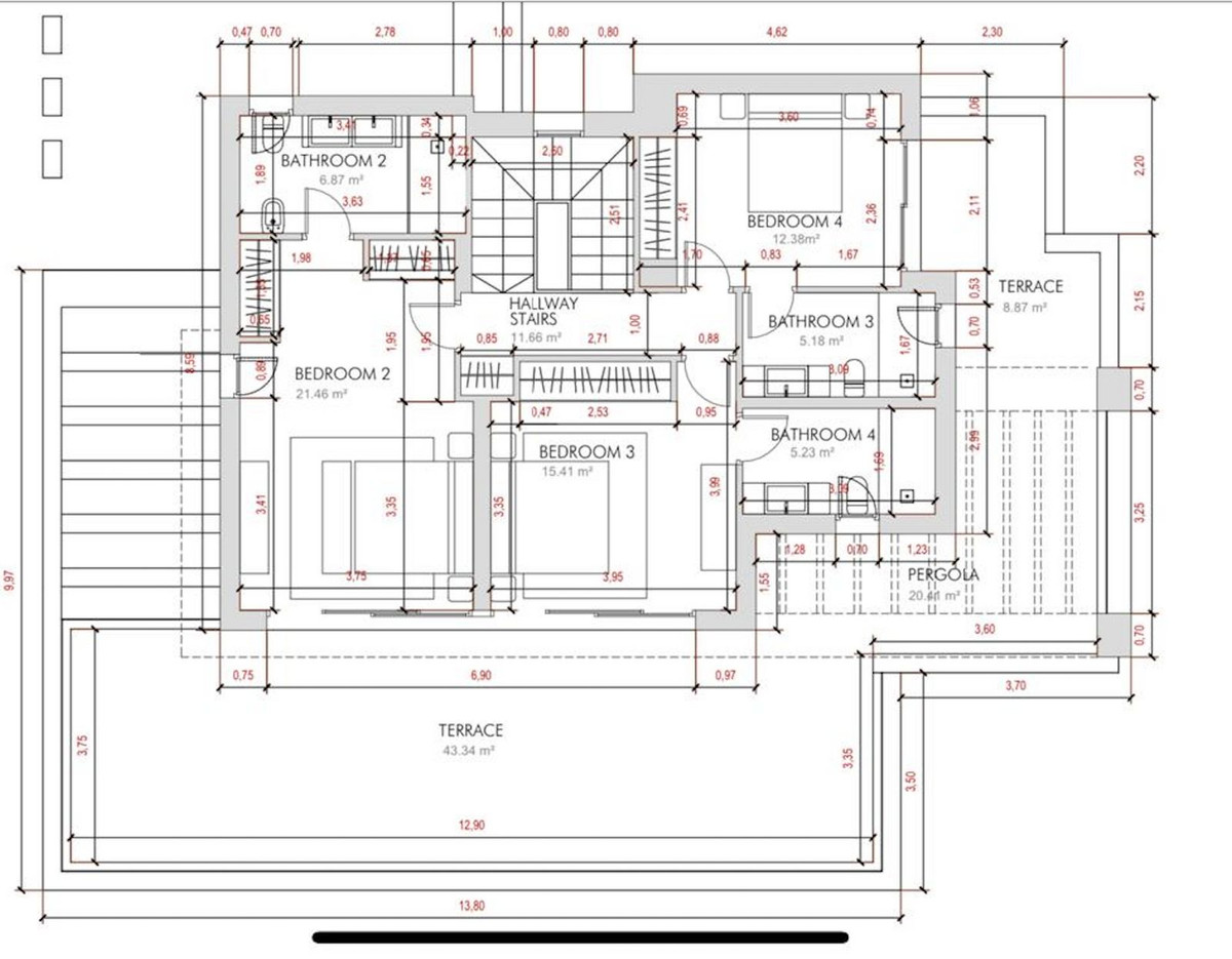 This villa is built over 314 square meters. It has the original configuration of the villas, with one bedroom and ensuite bathroom on the ground floor, and 3 bedrooms each with it's own bathroom on the first floor.