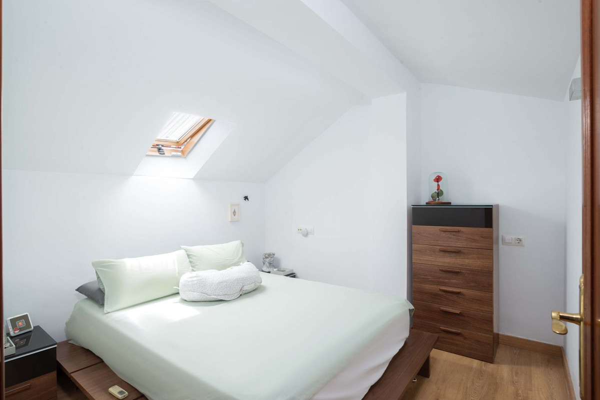 The upper floor has two bedrooms, a second full bathroom, a practical dressing room and a built-in wardrobe along the entire length of the hallway, perfect for keeping things tidy and providing ample storage space.