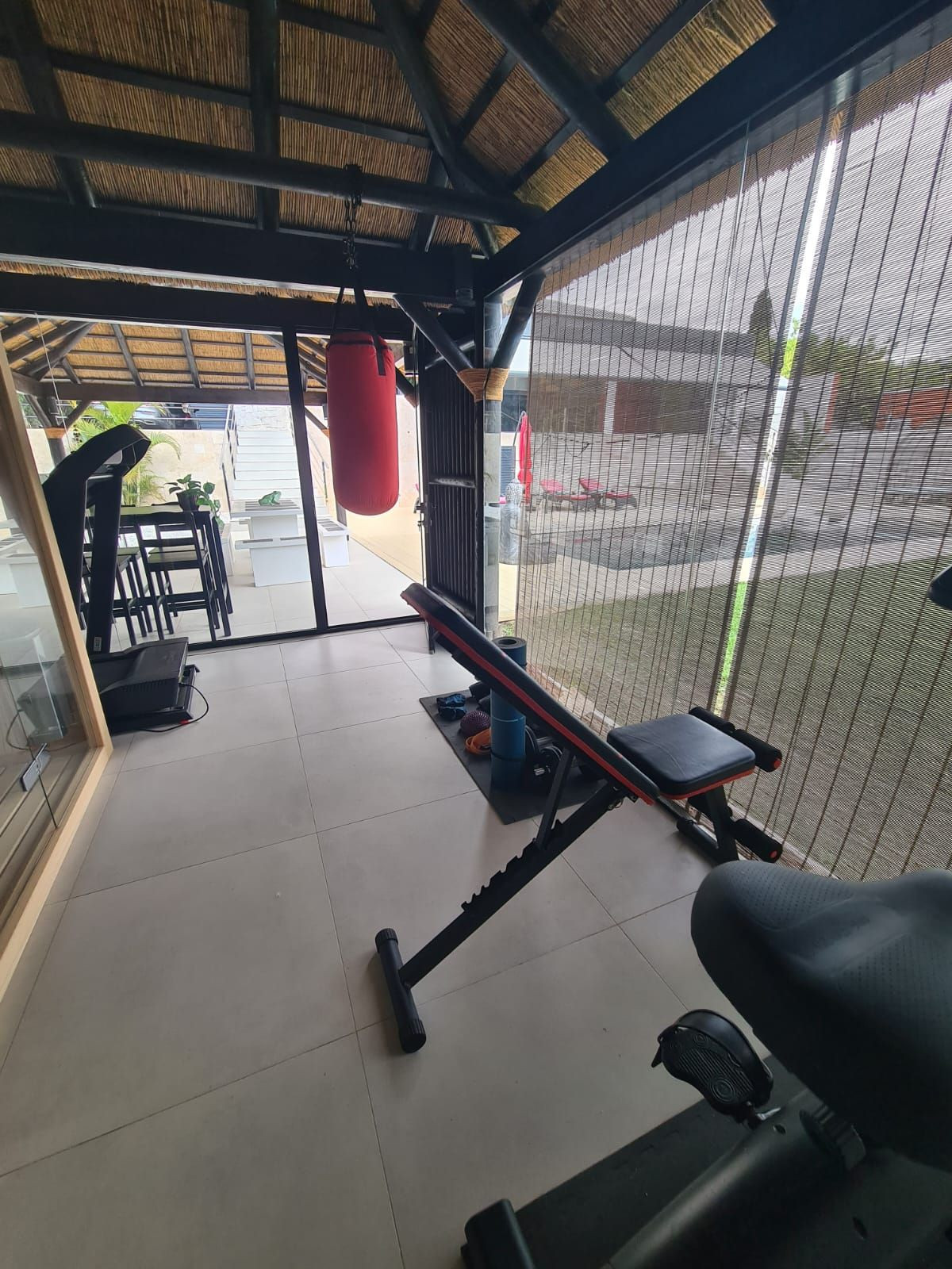 Summer kitchen & reed-roof dining pergola