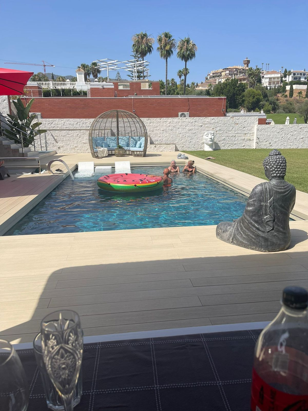 Sunken chill-out area & landscaped gardens with palm trees
