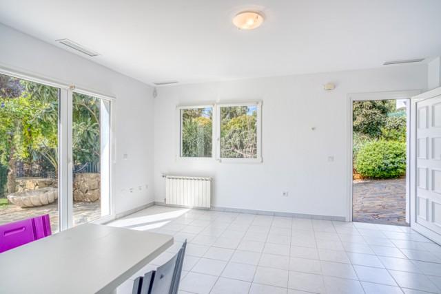 La villa est nichée dans un magnifique jardin arboré, agrémenté d'un majestueux olivier et d'une spectaculaire piscine chauffée, offrant une vue panoramique sur la Méditerranée et les montagnes environnantes. Son orientation plein sud garantit un ensoleillement naturel abondant et une intimité totale, tandis que la vaste terrasse offre un cadre idéal pour des repas en plein air et des réceptions sous les étoiles.