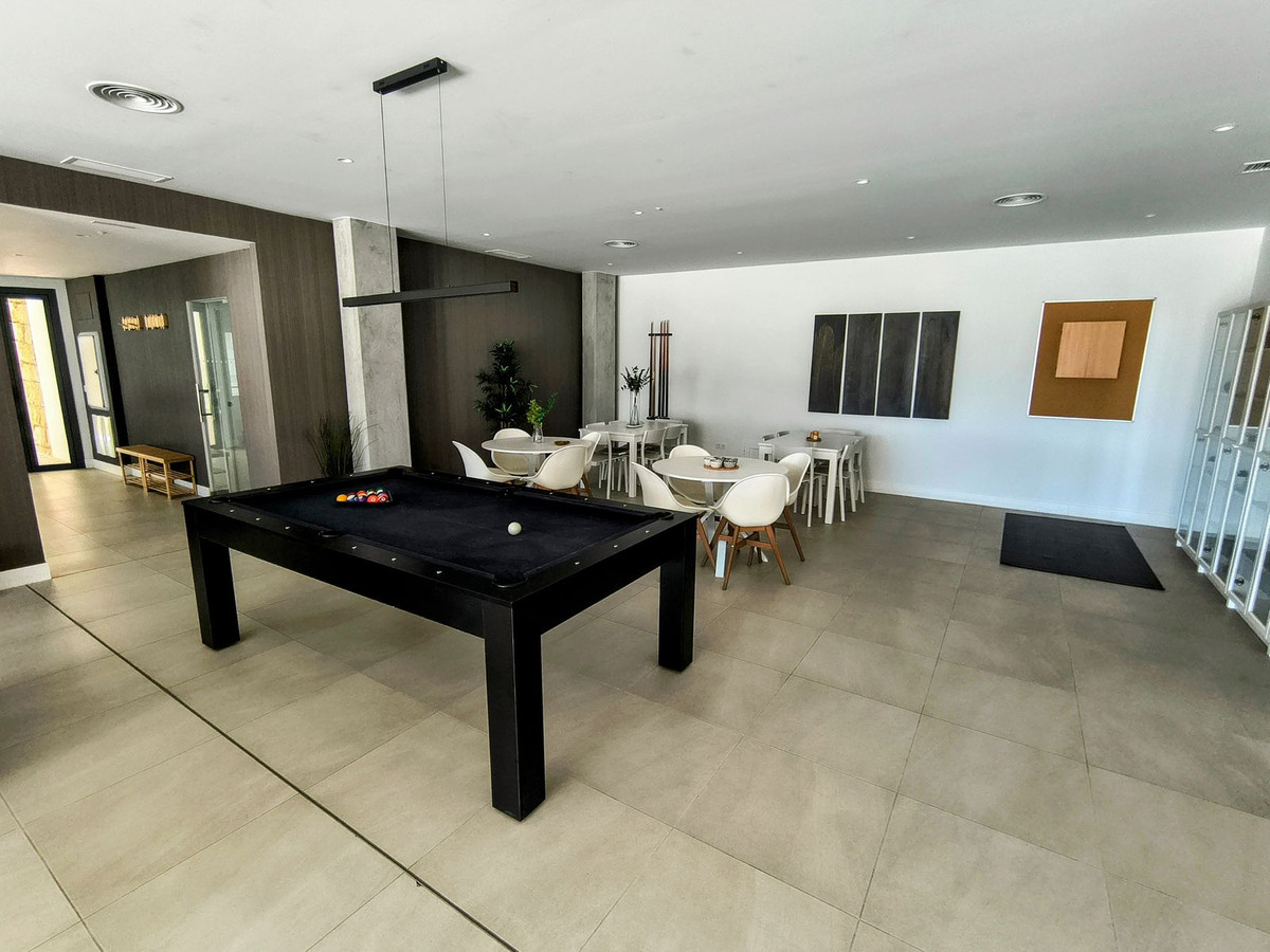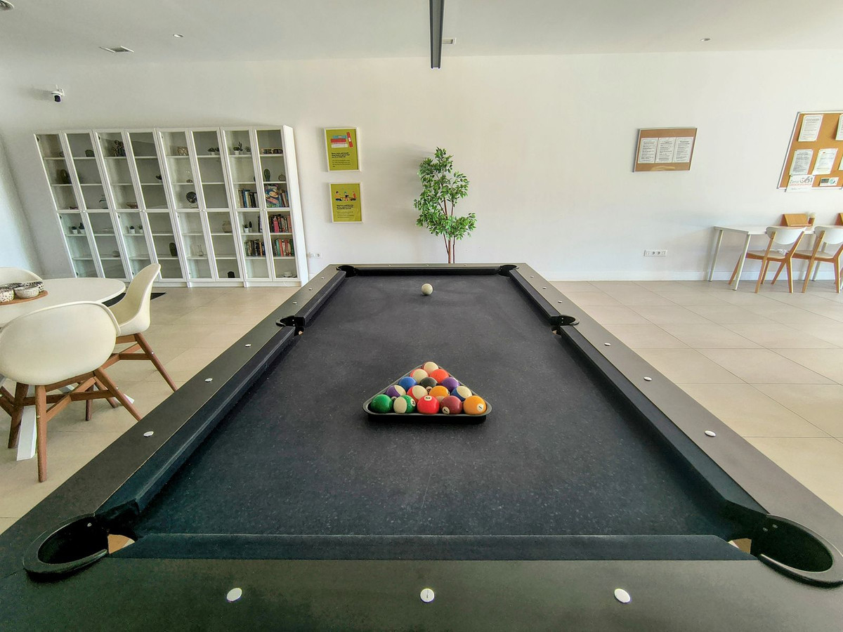 The urbanisation offers everything you could ask for. You have 2 swimming pools, outdoor children's play area, outdoor gym, communal terrace area with chaires and beds and a picnic area tables and benches. On top of this you have a communal social room which is equipped with sofas, chairs and tables as well as pool table. On top of this it is also fully equipped with a gym and spa area which includes a sauna and jacuzzi.