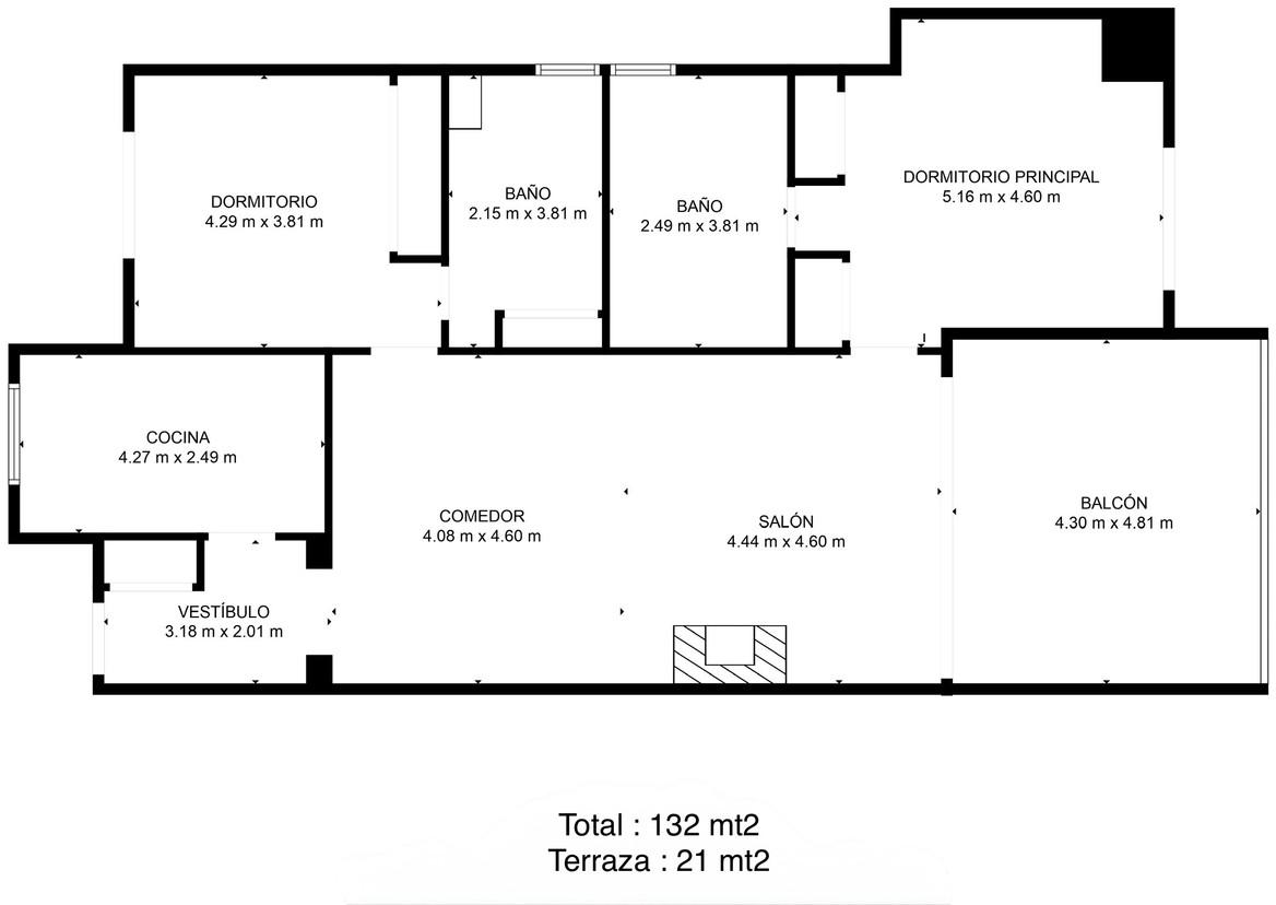With 133 m² of interior space and a 23 m² terrace, the property boasts generous proportions, natural light and a highly versatile layout. It features a large living room, two bedrooms with en-suite bathrooms, fitted wardrobes, and an independent kitchen that can be opened up to the living area or transformed into a third bedroom or office.