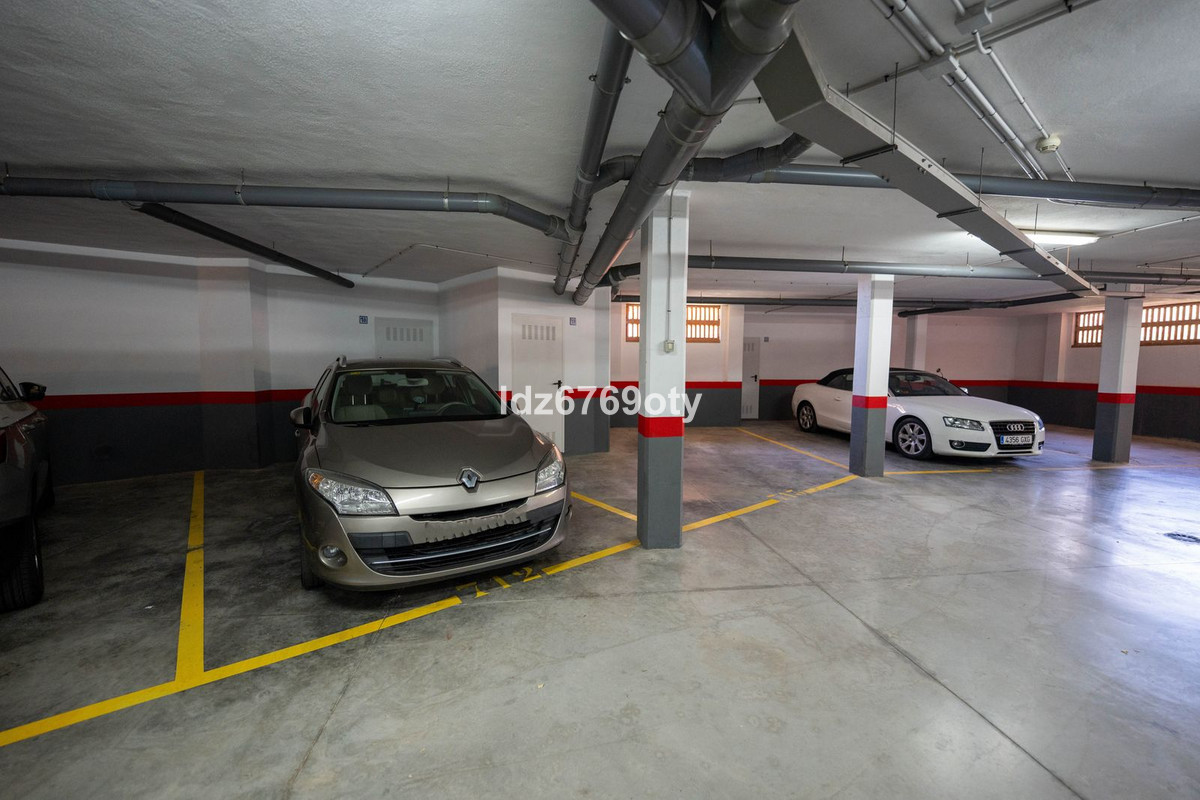 The 2-bedroom apartment, which is in excellent condition and has a living area of 90m2, faces South-West and is located on the 1st floor, which is accessible by lift from the indoor garage. The neutrally decorated apartment is fully furnished, equipped with air conditioning/heating and also has fast WiFi. The open and spacious kitchen offers various built-in appliances, including a dishwasher, oven, microwave, fridge/freezer and a ceramic hob. The dining/living room provides direct access to the spacious 25 m² terrace with seaviews and space for both sun loungers and a dining area for six people. The spacious master bedroom has built-in wardrobes, a television and direct access to the terrace. The en-suite bathroom has a Jacuzzi, shower, double sinks and a toilet. The second bedroom has built-in wardrobes and uses a separate second bathroom with a shower. The apartment also has a laundry room with a washing machine and dryer. The underground car park also has a private storage room and a parking space.