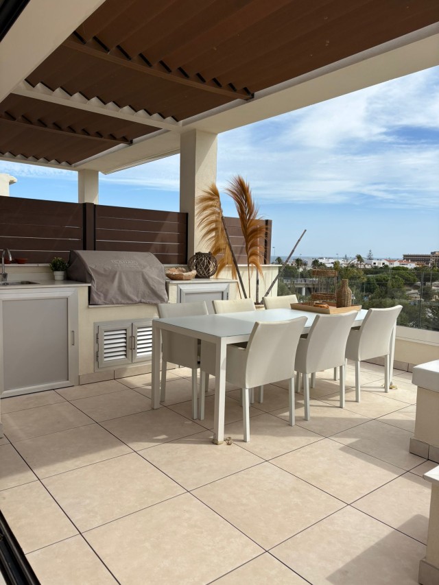 Appartement au dernier étage, Proche de la plage, meublé: négociable, cuisine équipée, parking: Underground parking, piscine: communautaire et privé, jardin: Communauté avec piscine, orientation Sud et Ouest