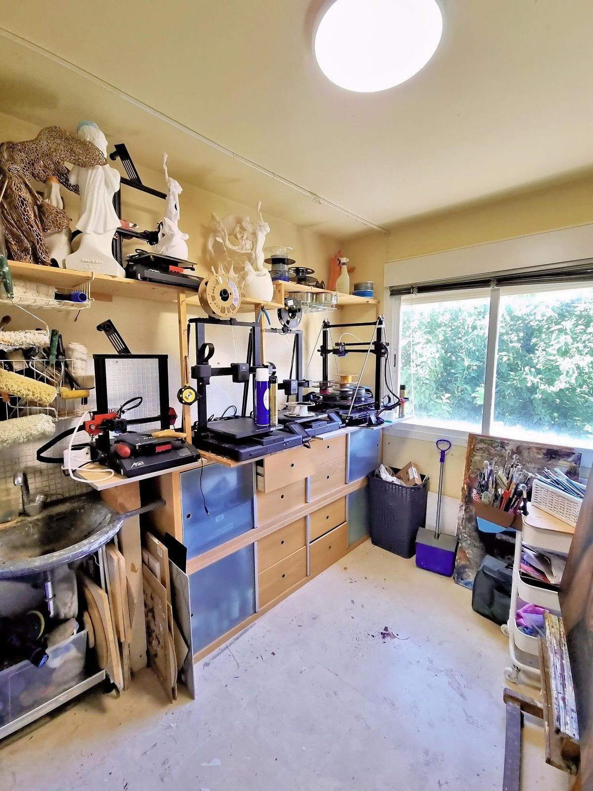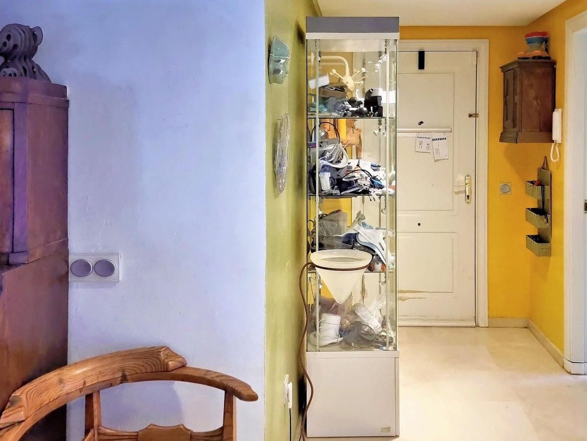 Consist of a big living room (Living room and Master bed joined together), 2 bedrooms (One being used as a studio for the artist). 2 bathrooms, small Walk-in wardrobe, Utility room.