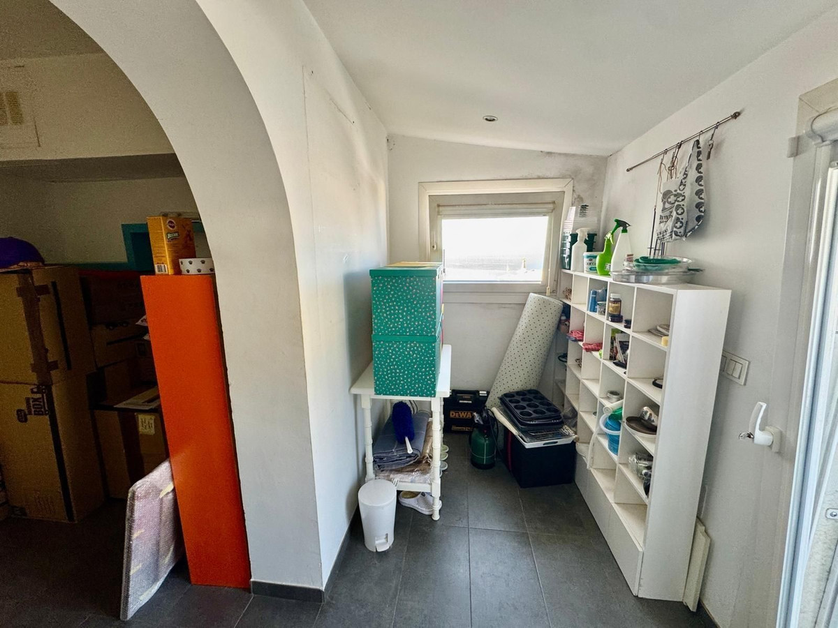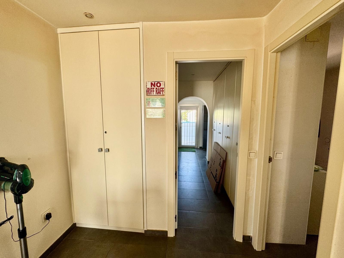 Outside, there are two large gardens, two patios, a garage, a motorcycle garage, and four storage rooms, providing plenty of storage space and convenience.