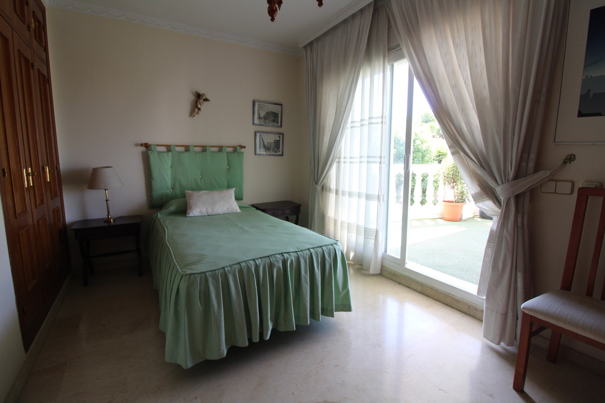 La Campana area in Nueva Andalucia is a thriving community with a vast array of amenities. Offered for sale is this house situated walking distance from all local services. The property enjoys far reaching views towards the sea and the spacious accommodation distributed on two floors comprises 4 bedrooms, two bathrooms and guest toilet, an open plan kitchen/dining and lounge area a further sitting room with an open fire in the lower floor and 3 different terrace areas on both floors. From the terraces you can have views of the mountains and the sea. Other features include, laundry room, off road parking, pantry and air conditioning. MUST VIEW!!