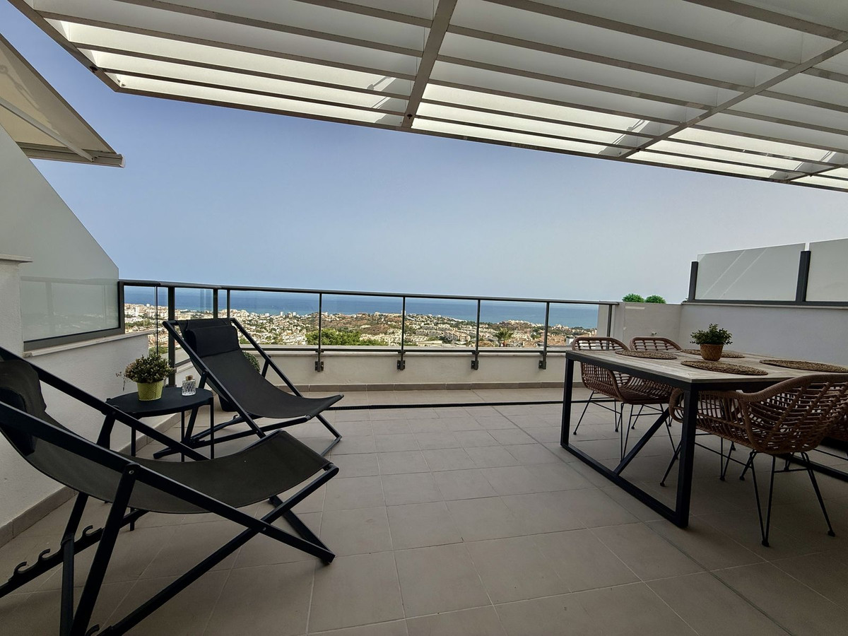 Discover this charming duplex penthouse in a premium residential complex located in Benalmádena, south-facing with sea views in a unique setting, a pleasure for the senses.