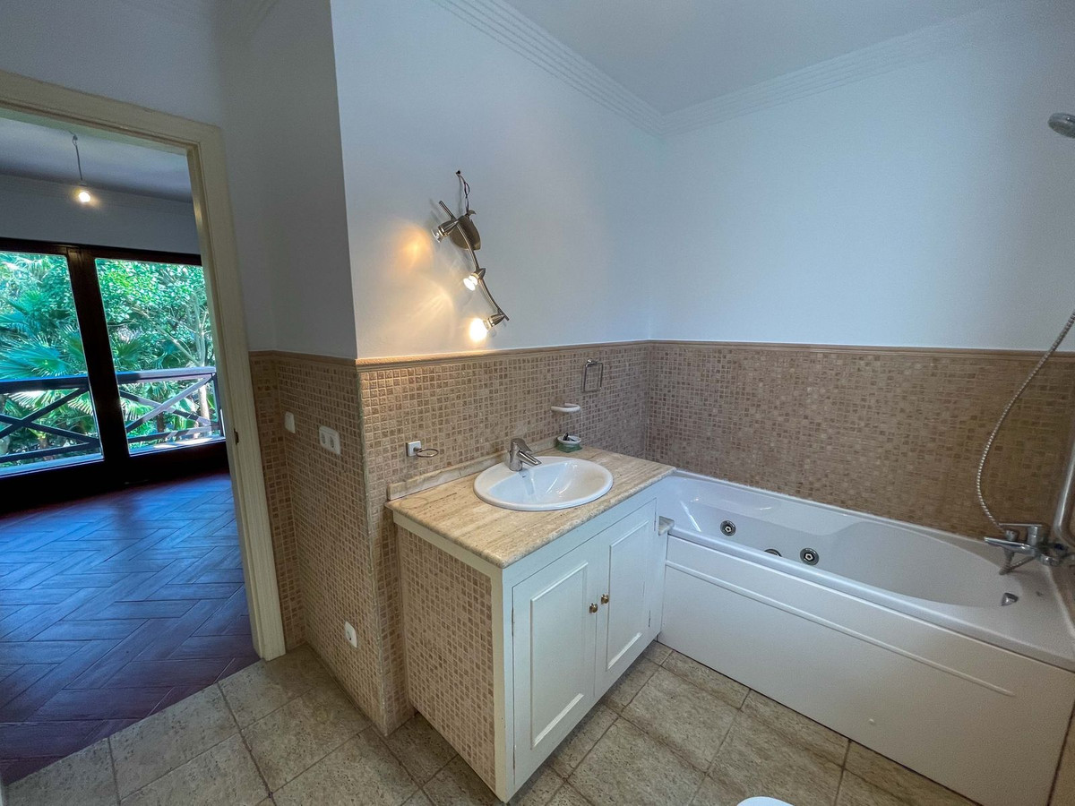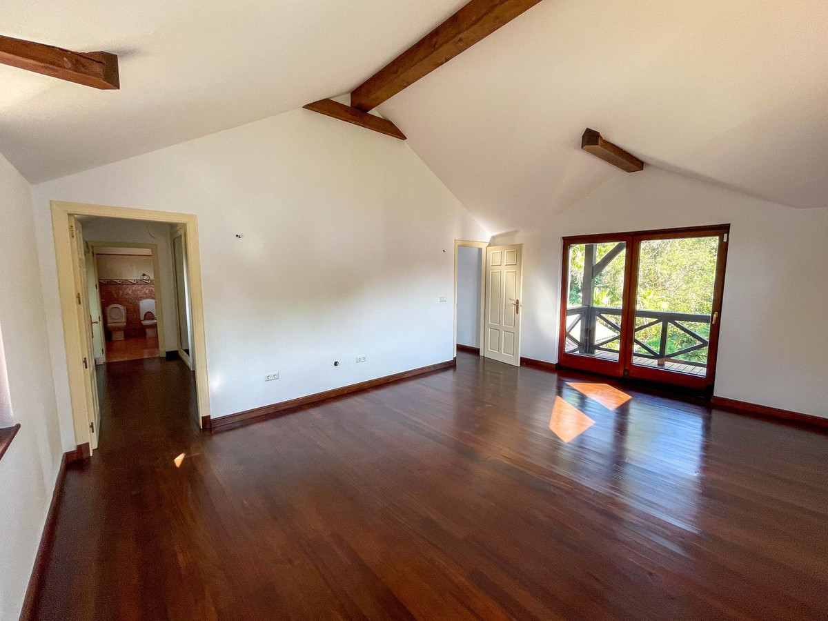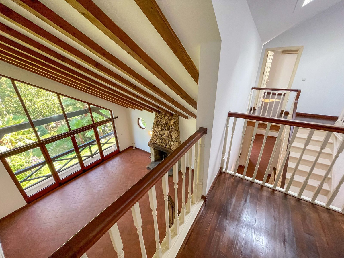 This traditional-style villa is located between Valderrama and the Almenara golf course, surrounded by mature woodlands and landscaped gardens. Spread over three floors, it features rustic elements such as wooden beams, a stone fireplace, and double-glazed windows. The property offers 6 bedrooms, 3 living rooms, two spacious kitchens, and access to balconies and gardens from the bedrooms. It also includes a separate pool house, barbecue area, pergola, and a wooden deck overlooking the pool.