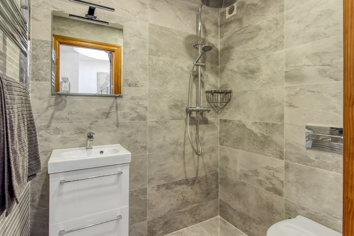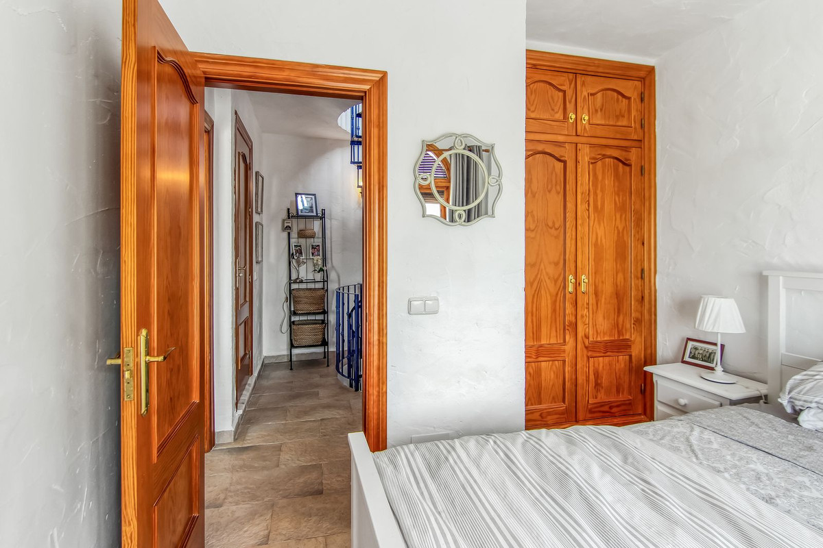 Spiral staircase takes you upstairs to the bedrooms and bathrooms. One floor more, and you enjoy your private roof terrace with amazing Guadalhorce Valley and pueblo views. Very practical utility/storage room on the roof terrace with washing machine.