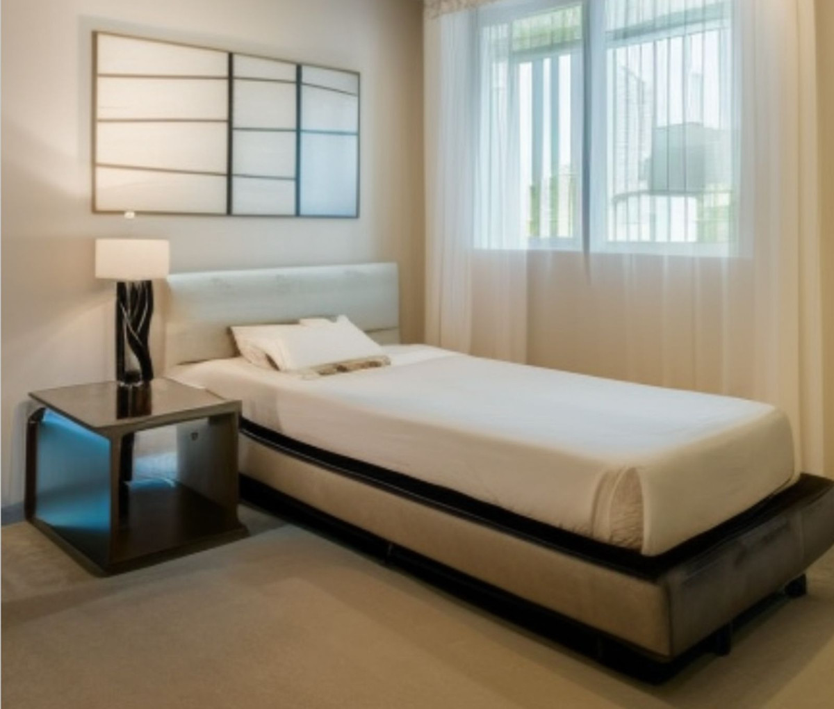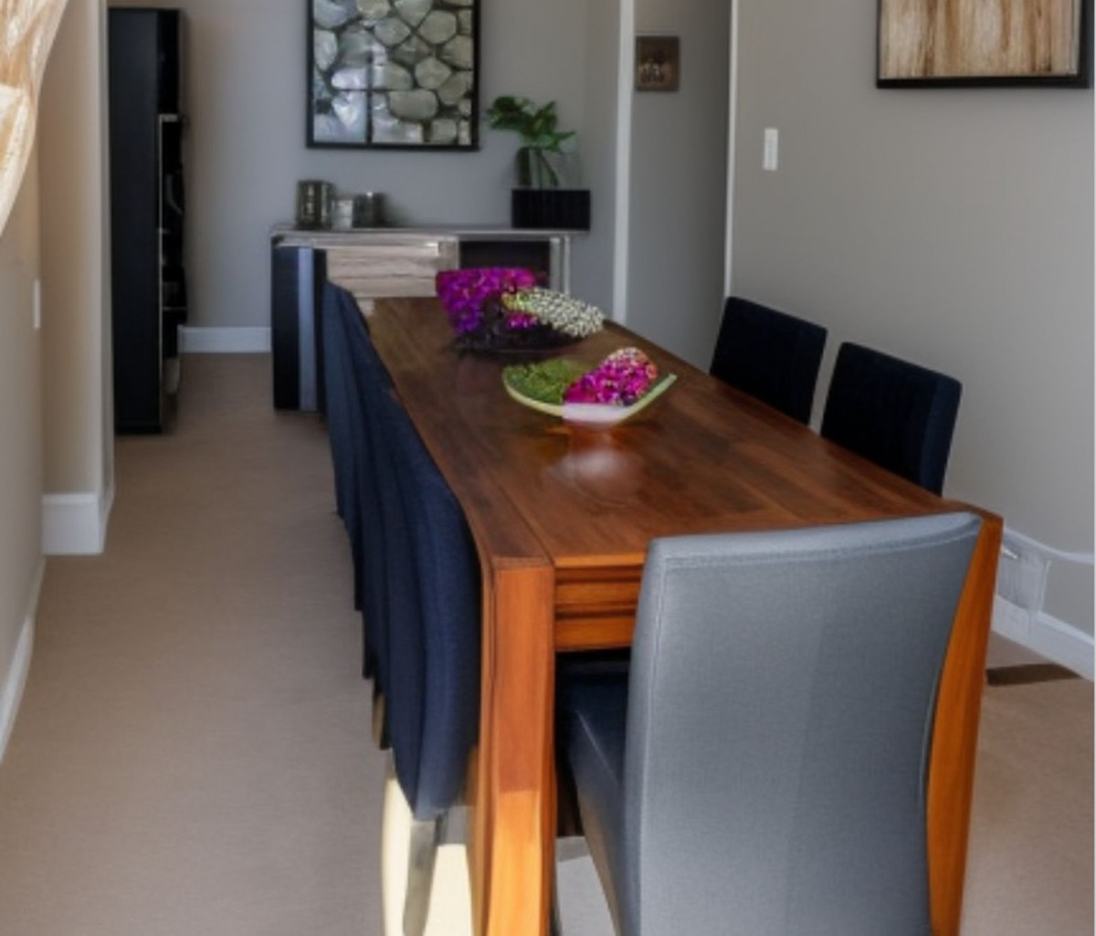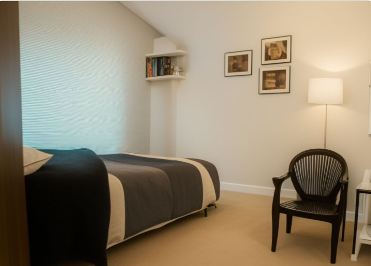 The apartment features 4 bedrooms, two of which have en-suite bathrooms, plus a third bathroom with shower and a guest toilet. A fifth room, currently used as a second, unused kitchen, can easily be converted into an extra bedroom, office, or walk-in closet.