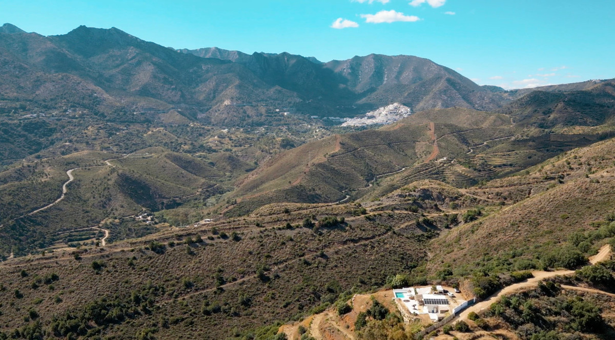 The estate is planted with fruit trees — orange, fig, avocado, vines, and more — and is accessed via a well-maintained dirt road, just 10 minutes from the beach and 15 minutes from Marbella’s town center.