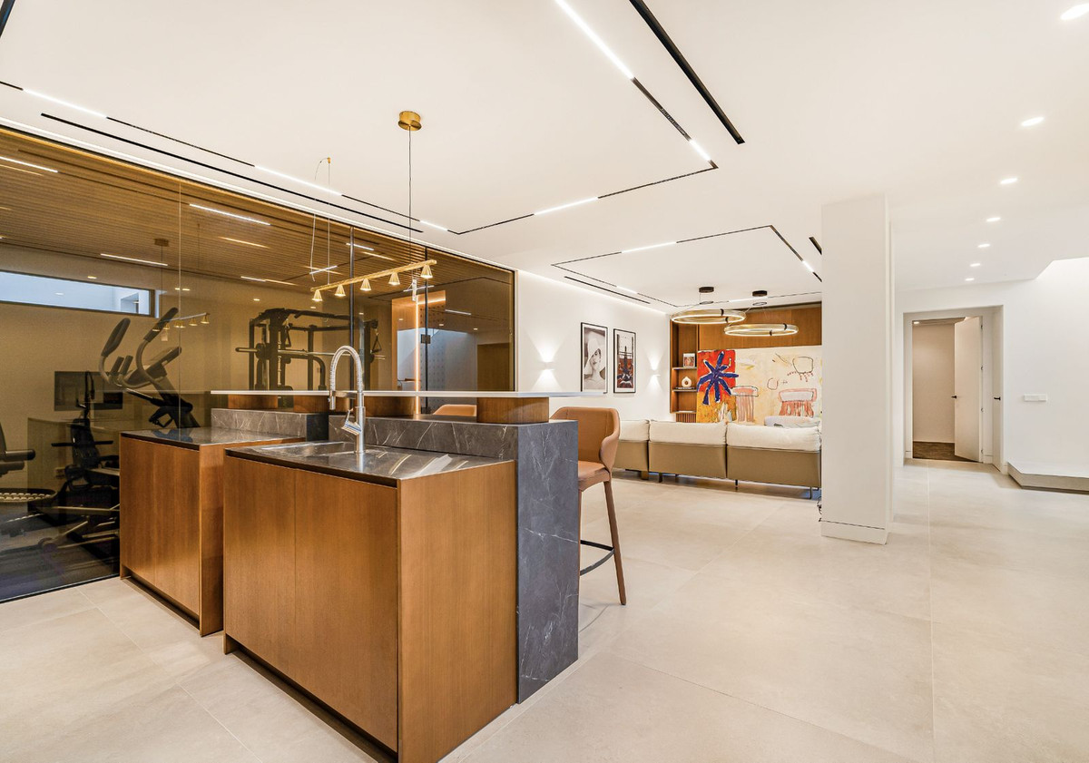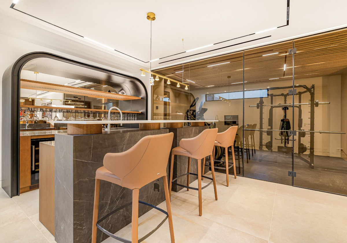 The basement is a luxurious sanctuary equipped with a Finnish sauna, gym, a large additional bedroom, storage room, home cinema, guest toilet, TV area, and a uniquely designed bar. Furniture and carpets supplied by prestigious Italian brands such as "Bonaldo", "Ditre", and "Talenti" enhance the villa's elegance and comfort.