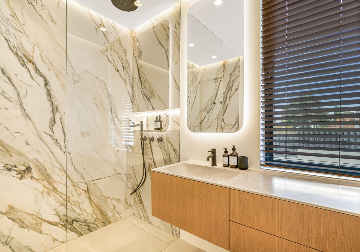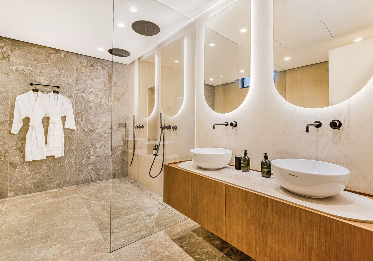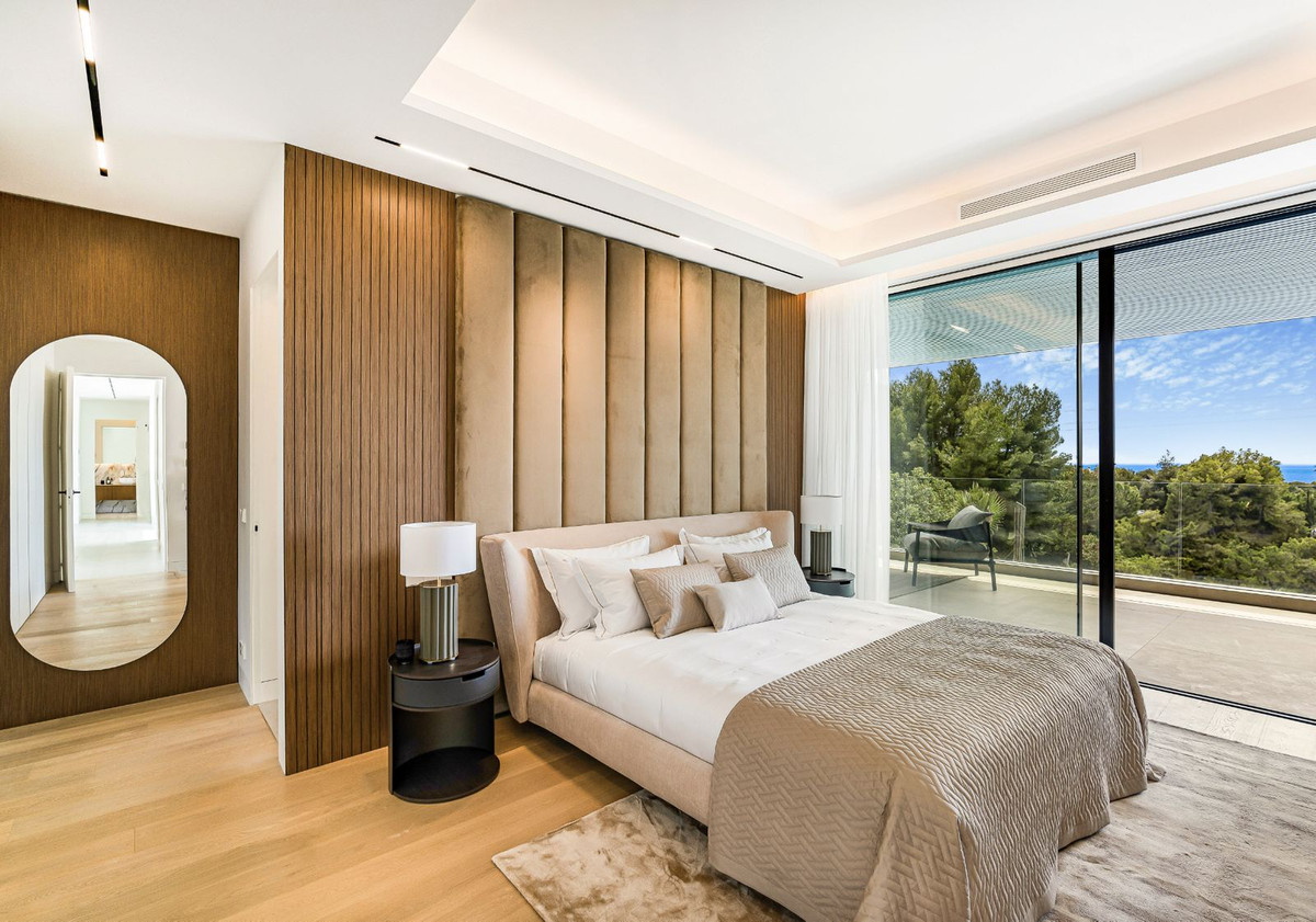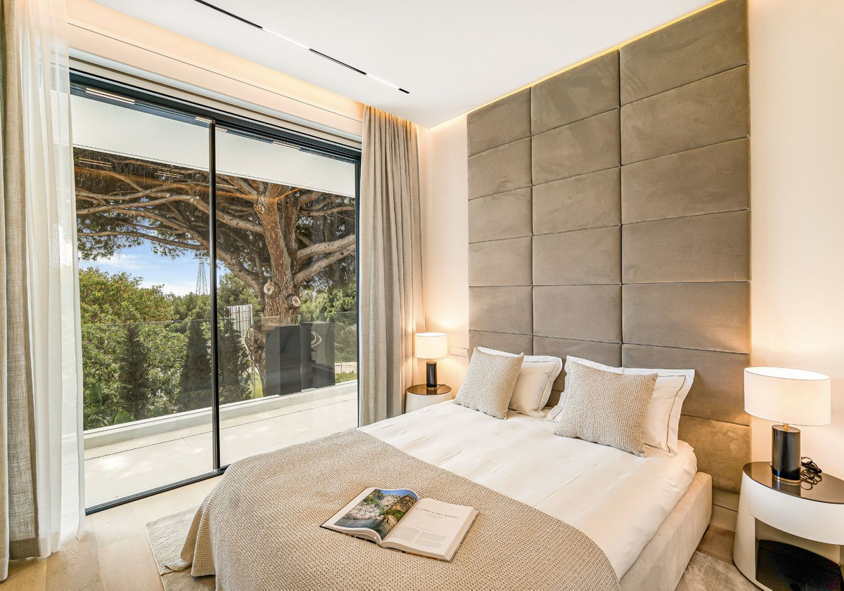 With a total built area of 813 m² on a plot of 1,050 m², this villa has been meticulously designed with top-quality materials and large windows that harmoniously connect the interiors with the natural surroundings. Majestic pine trees on the property create a unique and tranquil Mediterranean atmosphere.