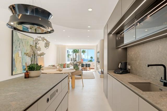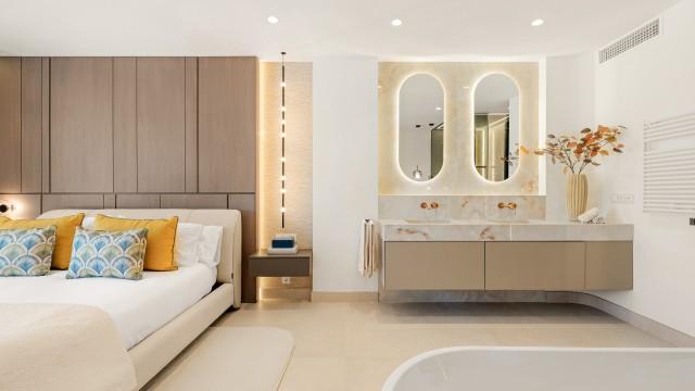 Un penthouse magnifiquement rénové avec une vue panoramique imprenable sur la mer est désormais disponible à la vente dans le quartier très recherché d'Estepona. Nichée dans la prestigieuse communauté fermée de Bahia del Velerin, cette résidence offre un environnement serein et sécurisé, avec sécurité 24h/24 et accès direct à la plage de sable.