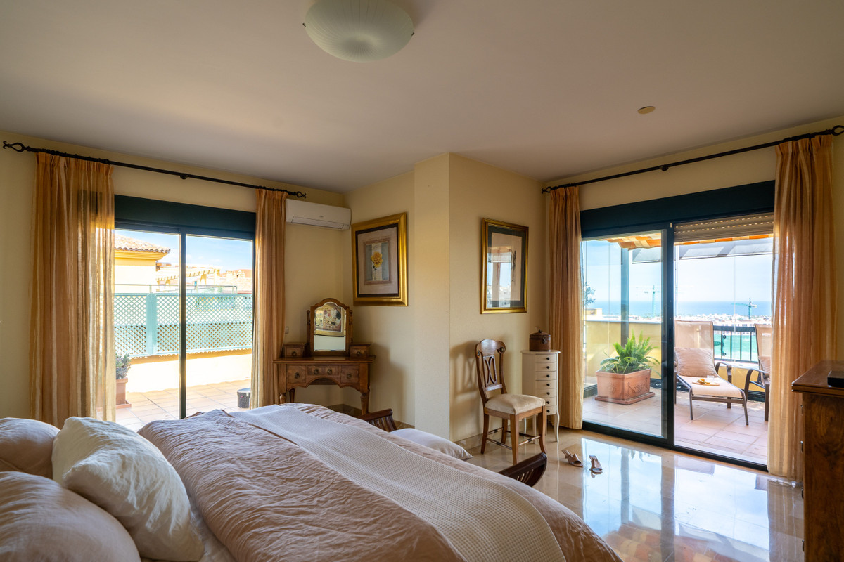 What truly sets this penthouse apart is the extensive terrace that envelops the property, measuring over 143m². This outdoor oasis provides unparalleled views and can be accessed from nearly every room, giving you the sensation of residing in a secluded skyvilla rather than a penthouse. It’s the perfect setting for sunbathing, alfresco dining, or simply soaking in the serene surroundings while enjoying the incredible views over the Mediterranean.