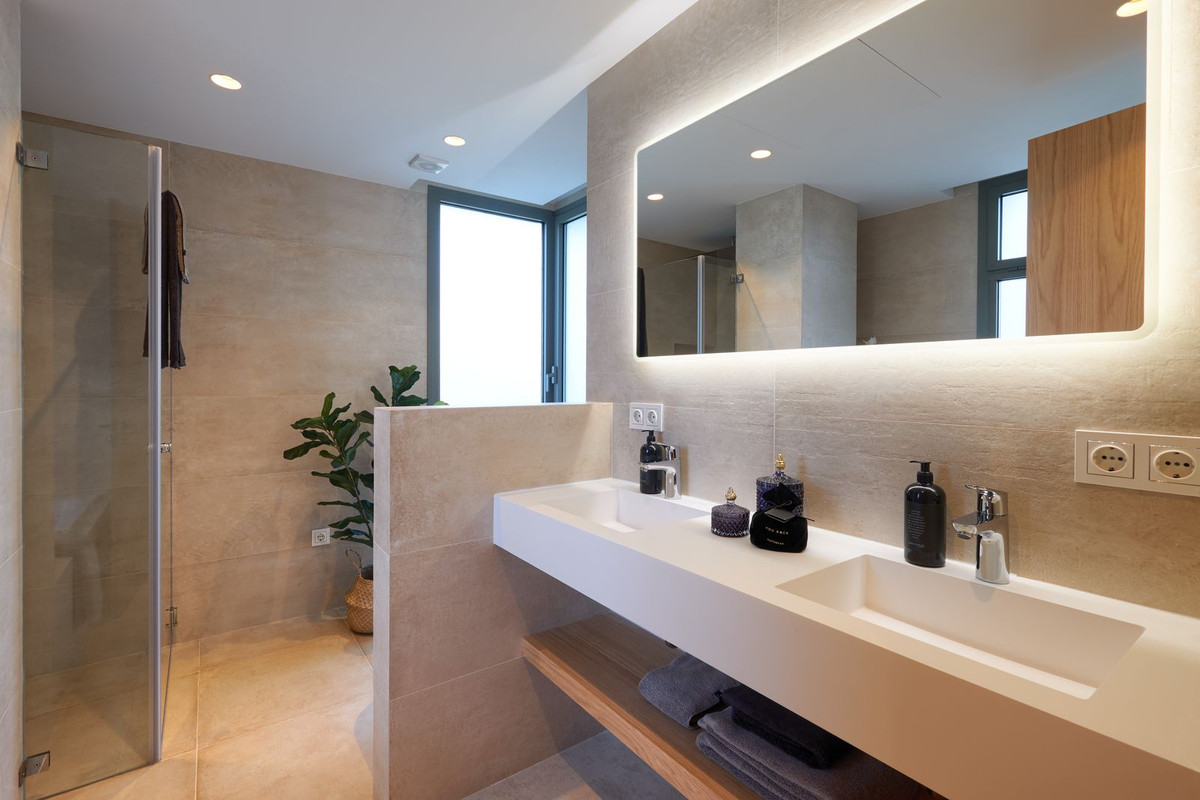 A modern south facing 6-bedroom frontline golf villa located in El Campanario, Estepona East, within a short drive of beaches, a variety of golf courses, San Pedro de Alcantara, Puerto Banus and Estepona Town Centre. Distributed over three floors, the accomodation comprises an entrance hall, a guest toilet, an open-plan fully fitted kitchen, lounge and dining area with direct access to the covered terrace with seated areas and views overlooking the pool & manicured garden. Upstairs, there are four double bedrooms, two of which are ensuite and two bedrooms sharing a family bathroom. From this level, there is access to the large solarium with built-in BBQ, Jacuzzi, covered area ideal for outdoor dining and views overlooking the golf course. On the lower level, there is a large living/entertainment area, two guest bedrooms sharing a bathroom, laundry room and storage. Situated next to El Campanario Club where there's a gym, restaurant, indoor pool and a 9 hole golf course.