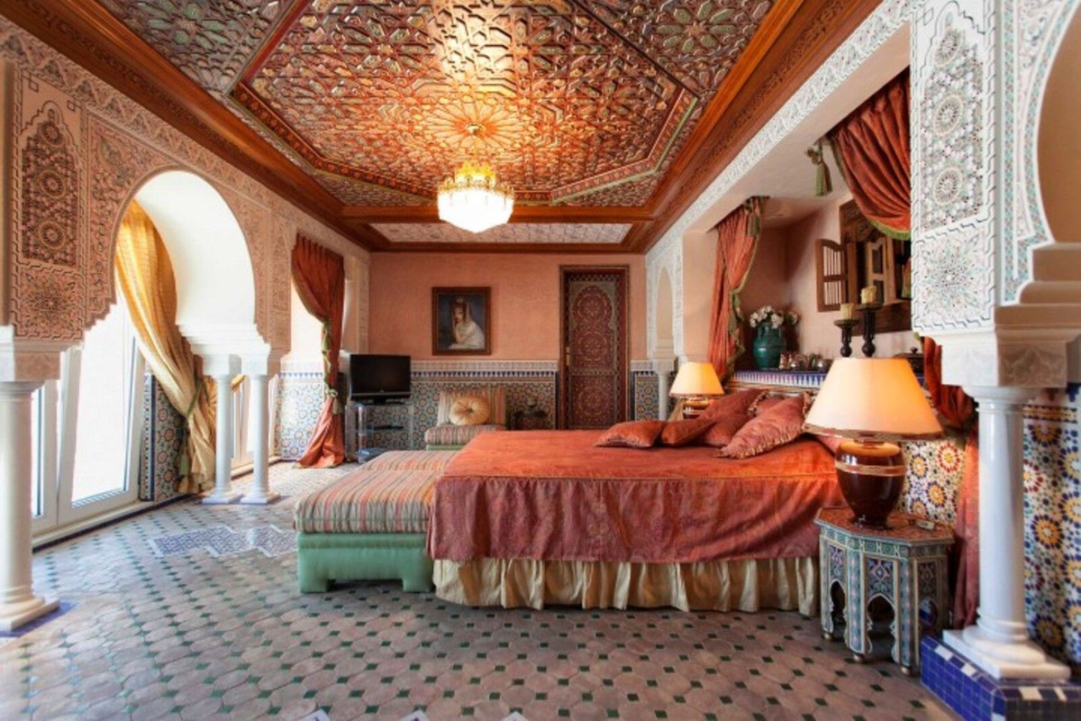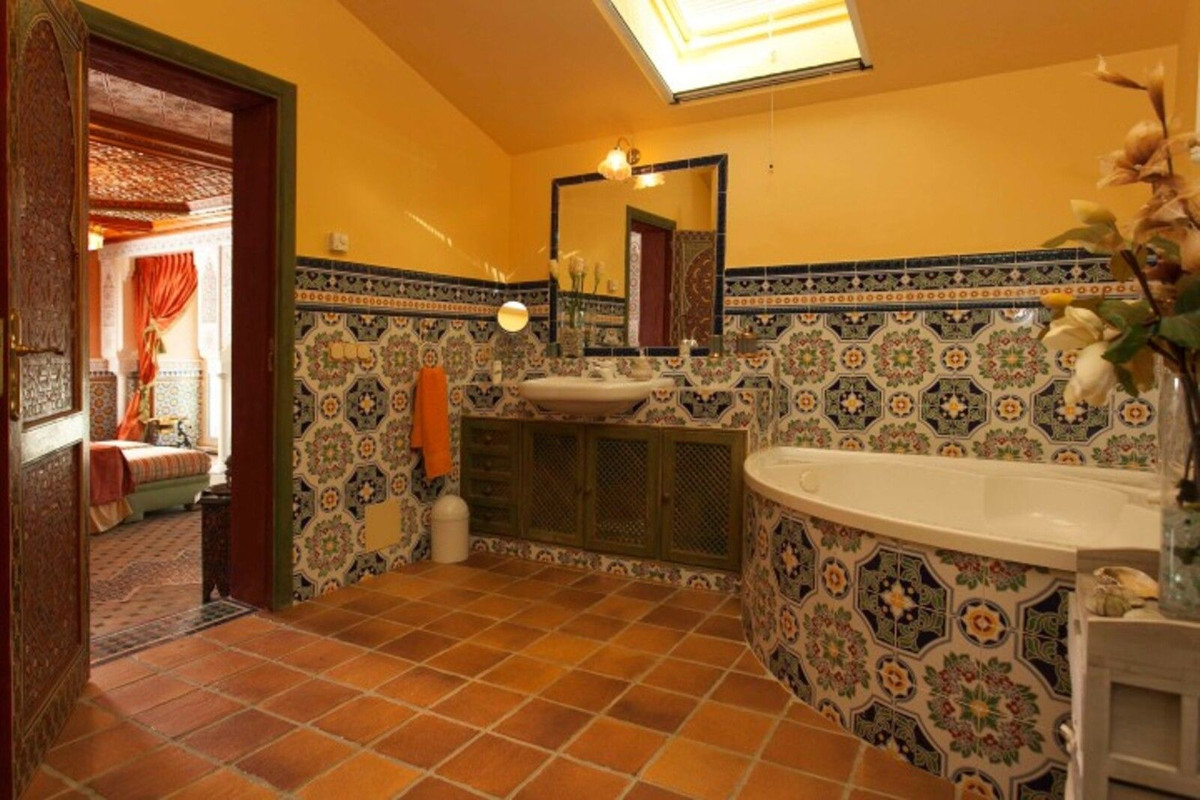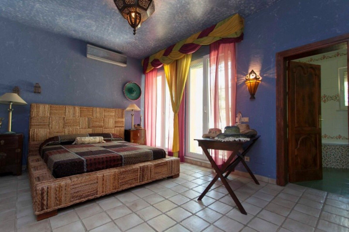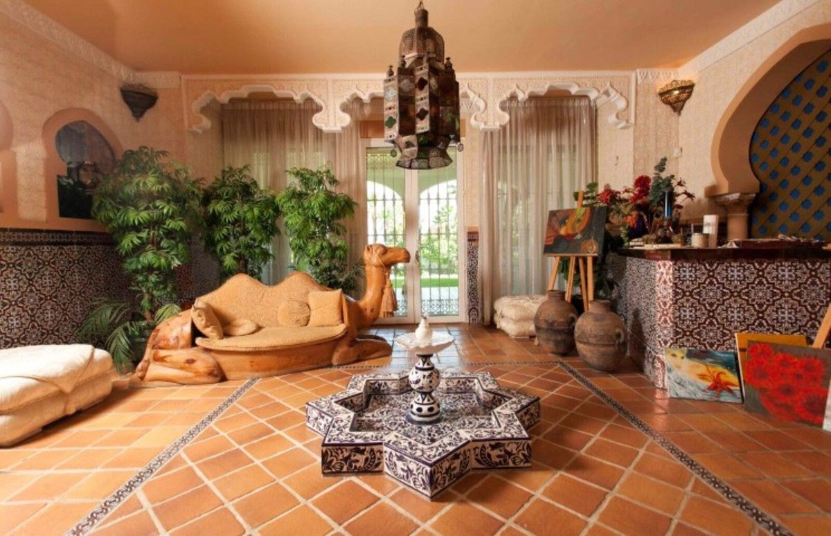 Villa with Islamic architecture, this wonderful property will surprise you! On the first floor we can find a wonderful entrance hall with Arabic fountain, 1 living room with access to the terrace and pool, another winter living room with fireplace, large kitchen (with dumbwaiter), 3 bedrooms en suite, one of them with dressing room and a room with gym and sauna.