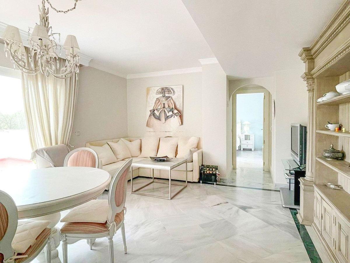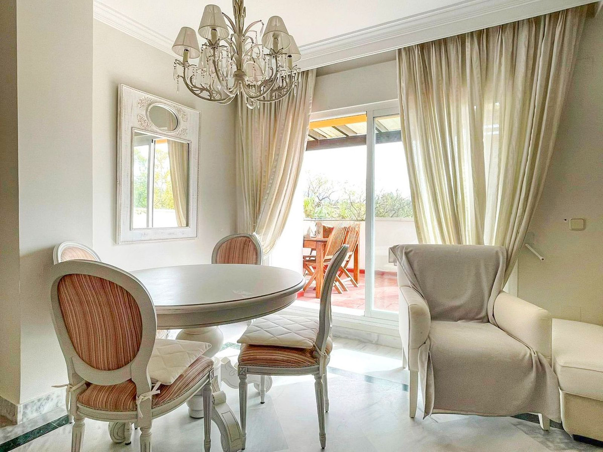 Bright two-bedroom, two-bathroom penthouse located in La Dama de Noche, one of the most exclusive and sought-after residential complexes in the area. Just one kilometre from the beach and Puerto Banús, it offers the tranquillity of a residential setting along with the convenience of having all services close at hand.