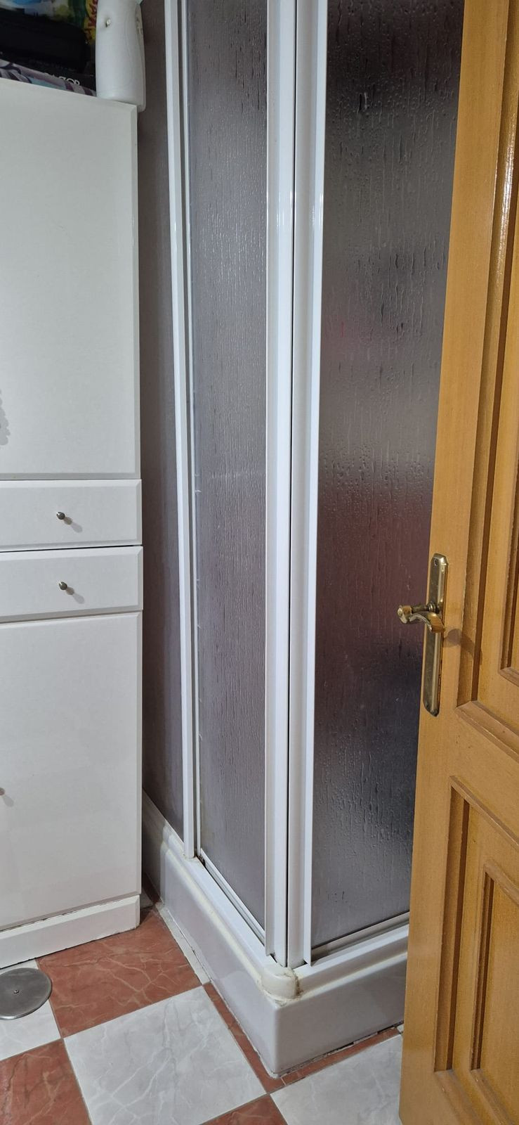 The apartment has three bedrooms, one bathroom, and a terrace. The appliances are new: refrigerator, washing machine, ceramic hob, and electric water heater.