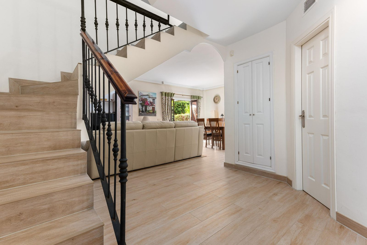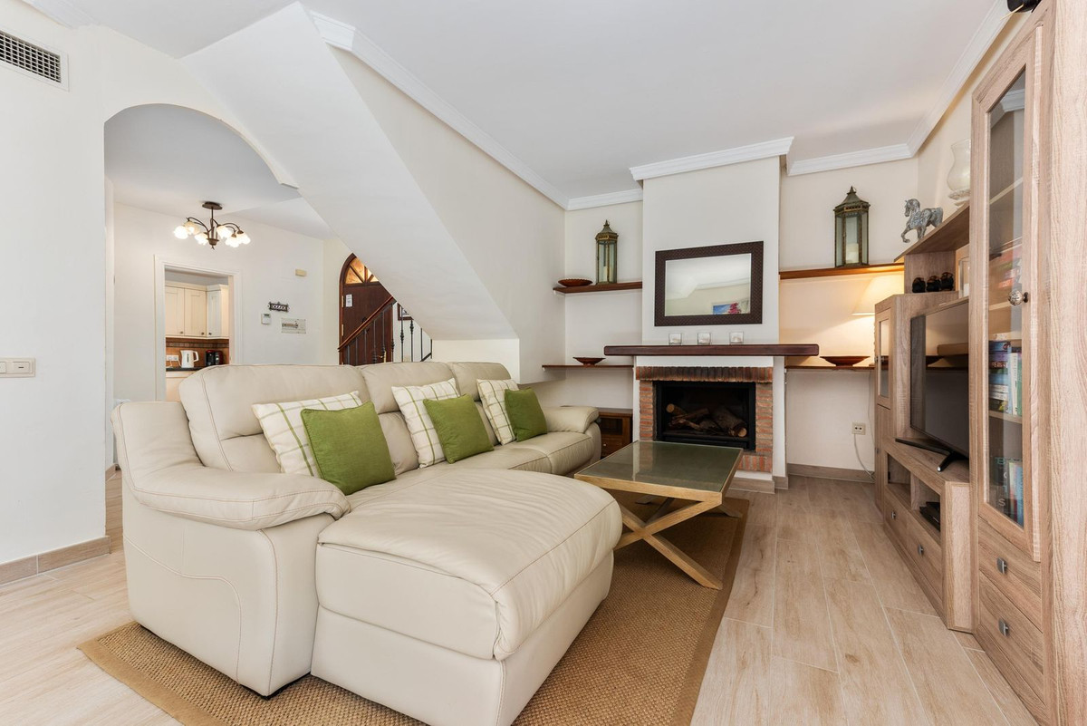 SHORT TERM RENTAL ALLOWED! Located in one of the most desirable areas of Estepona, this cozy townhouse combines comfort, style, and a privileged location. The property, in excellent condition, has a built area of 128 m² spread over two floors, with two bedrooms and two full bathrooms. On the ground floor, there is a spacious living room with an open-plan kitchen and a guest toilet, with direct access to a private terrace, perfect for enjoying the Costa del Sol climate. On the upper floor, there are two bright, exterior-facing bedrooms and two full bathrooms, including an en-suite bathroom in the master bedroom. The property includes a parking space and access to communal areas with a swimming pool and well-maintained gardens. Its location provides easy access to the beach, services, and leisure, making it ideal for both permanent residence and investment. This home offers a complete opportunity to live in a tranquil and exclusive environment, combining comfort, functionality, and rental potential in the heart of Estepona.
