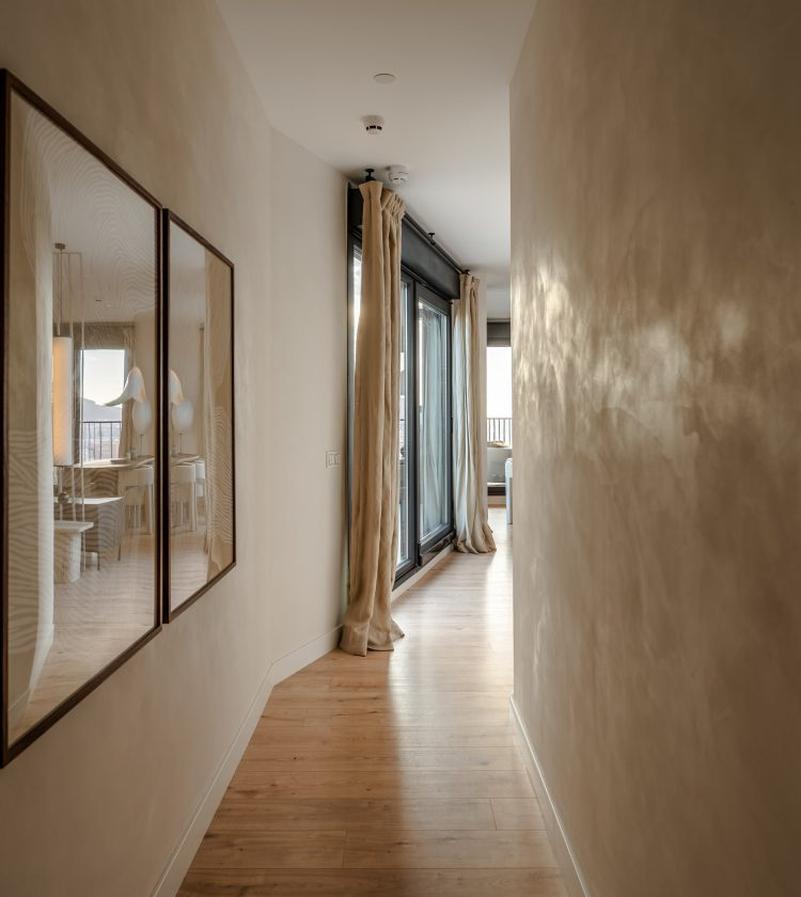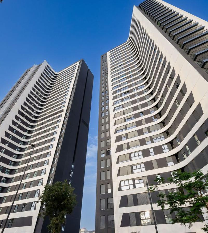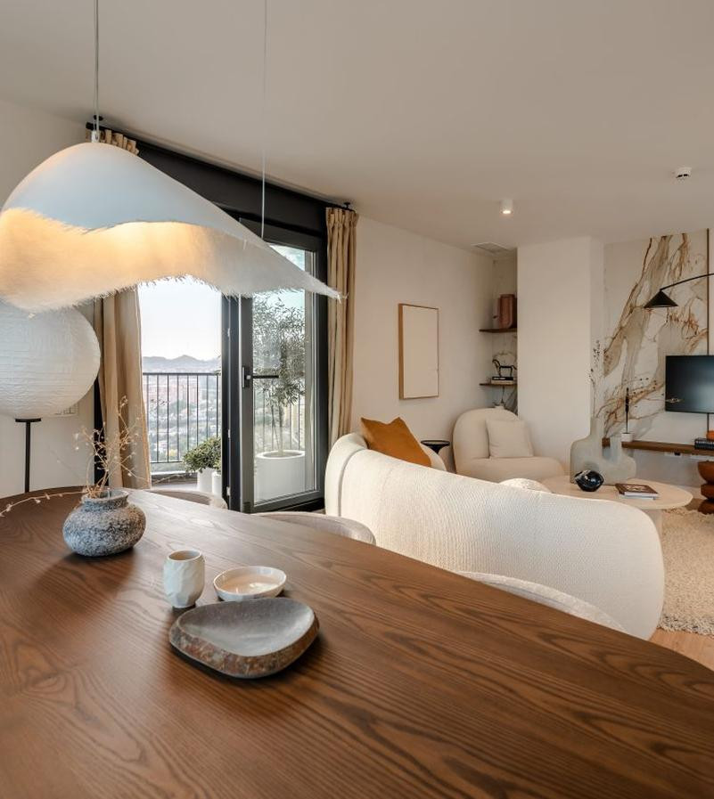 The apartment features a bright and functional layout, consisting of a spacious living and dining area with direct access to a private 12-square-meter terrace facing southwest. This orientation guarantees sunlight and natural brightness throughout most of the day, along with spectacular views of the urban skyline and coastline.