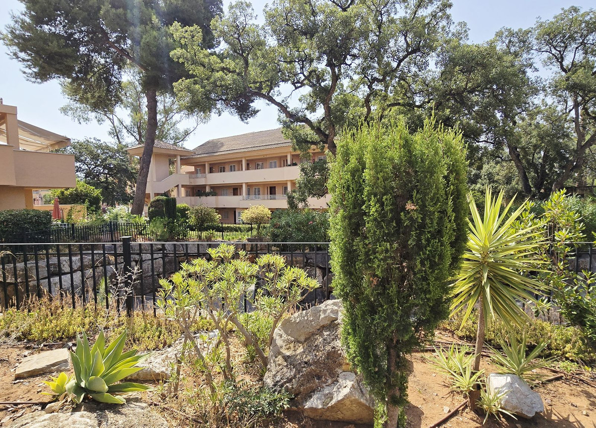 Few places in East Marbella boast such spectacular gardens, large communal pools, and extensive amenities like this resort-style development. Amid the buildings, planters, and walkways, you’ll find eucalyptus trees towering over 50 metres, more than 100 varieties of ornamental plants, colourful bougainvillaeas, and century-old cork oaks.
