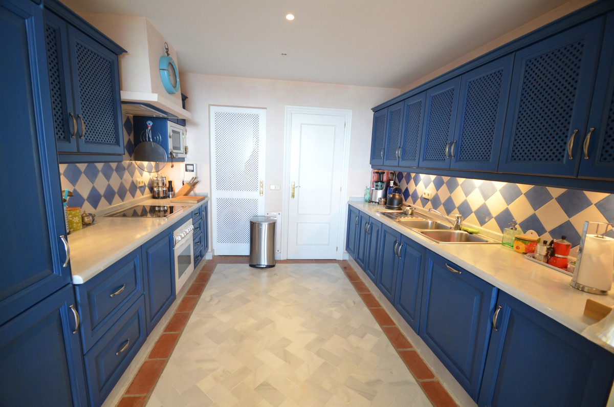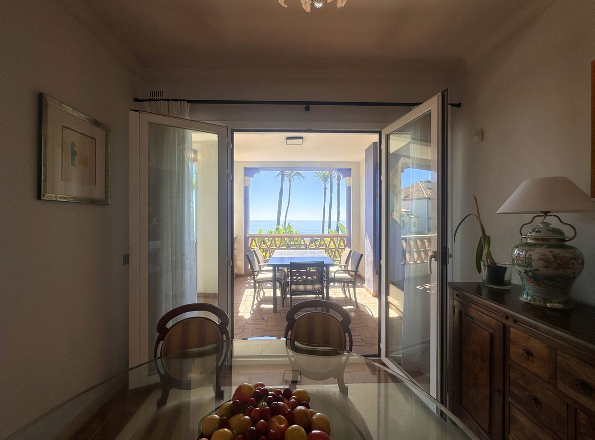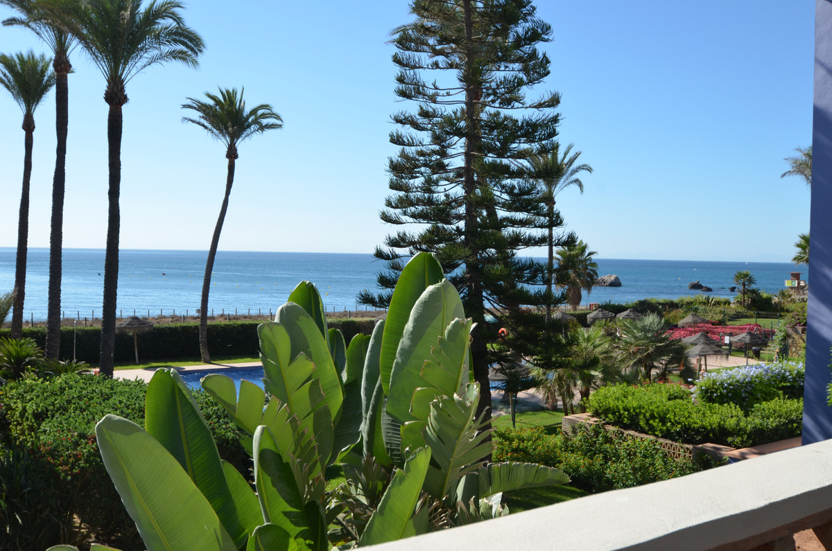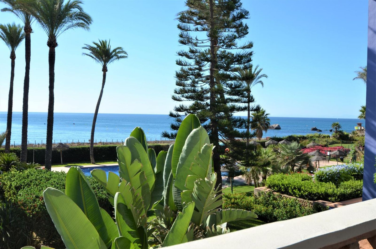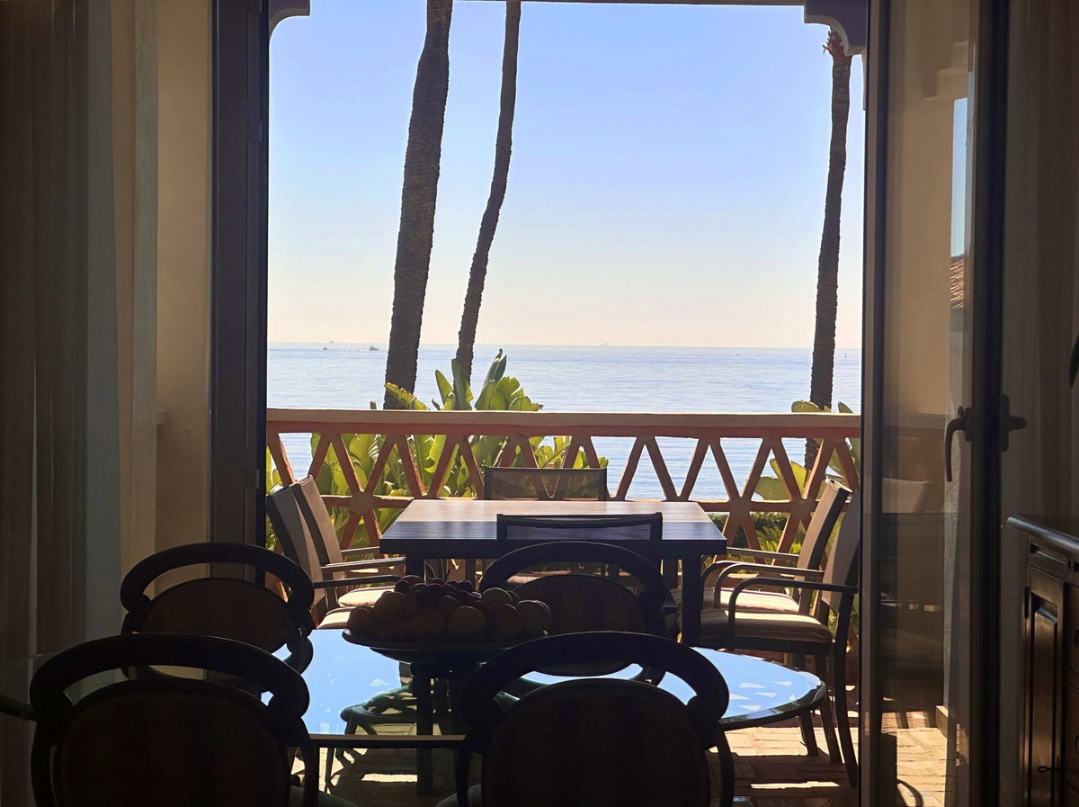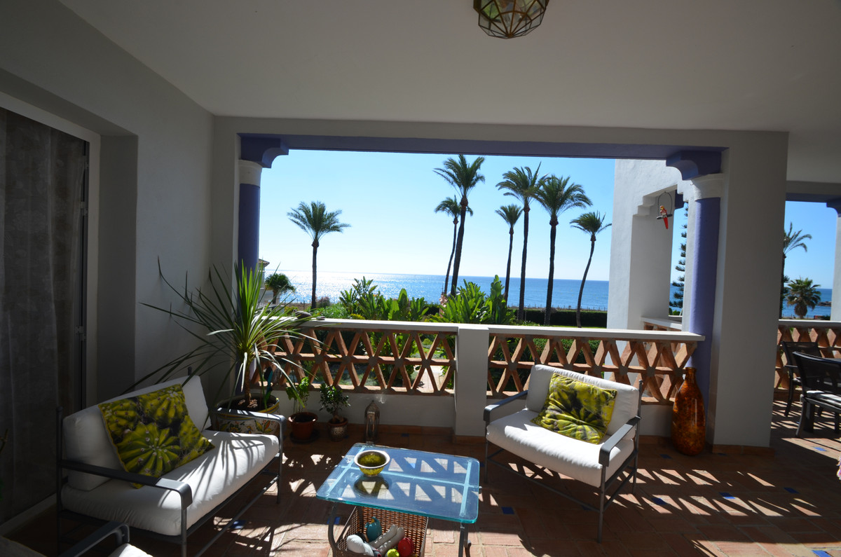 Luxury front line beach middle floor apartment. Located mid way between Estepona and the La Duquesa Marina, 5 minutes drive to all amenities and leisure areas, including excellent golf courses, one of them Finca Cortesín, home of the Volvo Masters.Only a few steps from magnificent beaches, restaurants and to a new beach club. 15 minutes walk through the prominade to the fishing village of Sabinillas. This property has just been recently reformed to a very high quality, magnificent kitchen with even coffee machine and wine cellar integrated, beautifull design living room, new a/c, etc. The property is south facing and enjoy stunning views to the Mediterranean Sea, Gibraltar and coast of Africa. Immaculate and quiet gated development with 24 hours security, with large gardens of beautiful features and fountains, 4 swiming pools, 2 of them heated. Great rental potential! Parking and storage room with an easy access with lift. Viewing is highly recommended!! JUST IN THE MARKET.