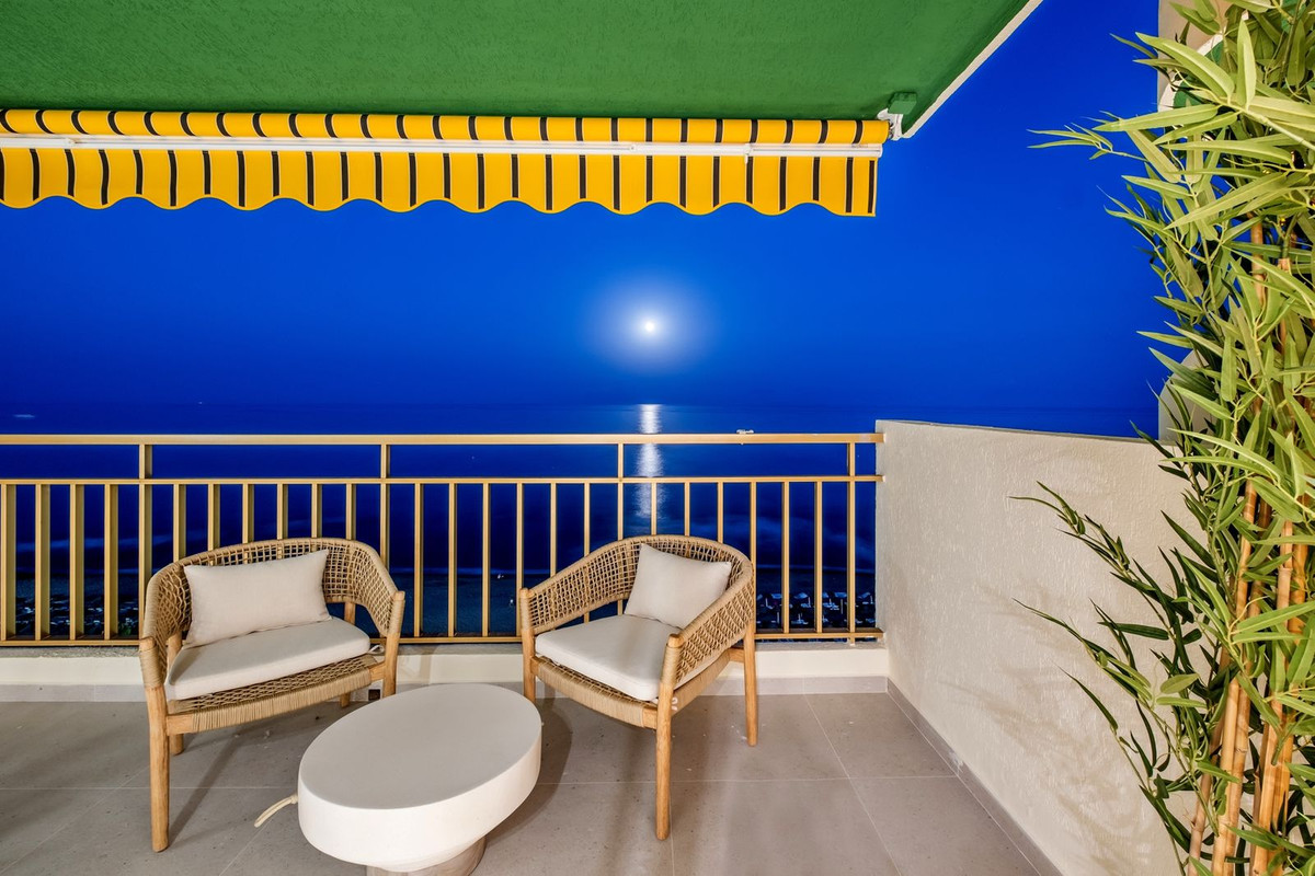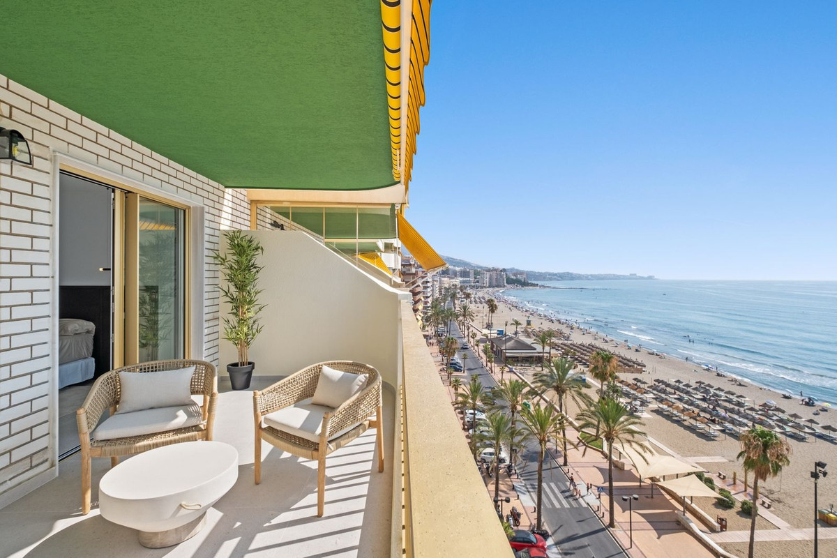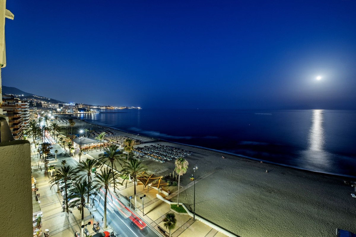 A spacious terrace offering front-row views of the sea and Fuengirola’s vibrant Paseo Marítimo