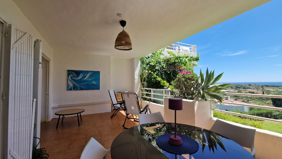 It offers a sunny south-facing terrace with sea views. Located in a quiet community,