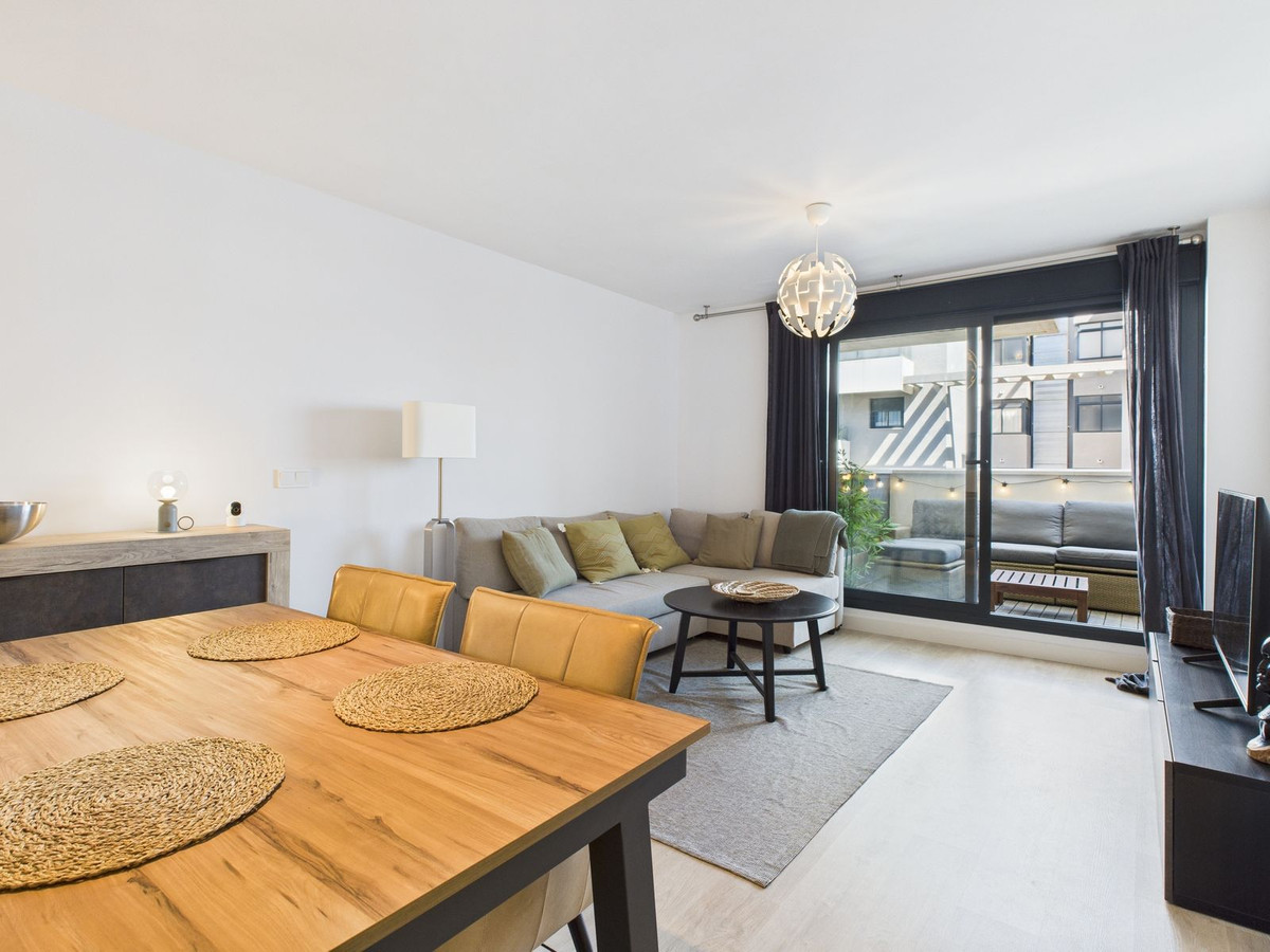The living room opens onto a private terrace, an inviting space to enjoy a morning coffee or unwind at sunset.