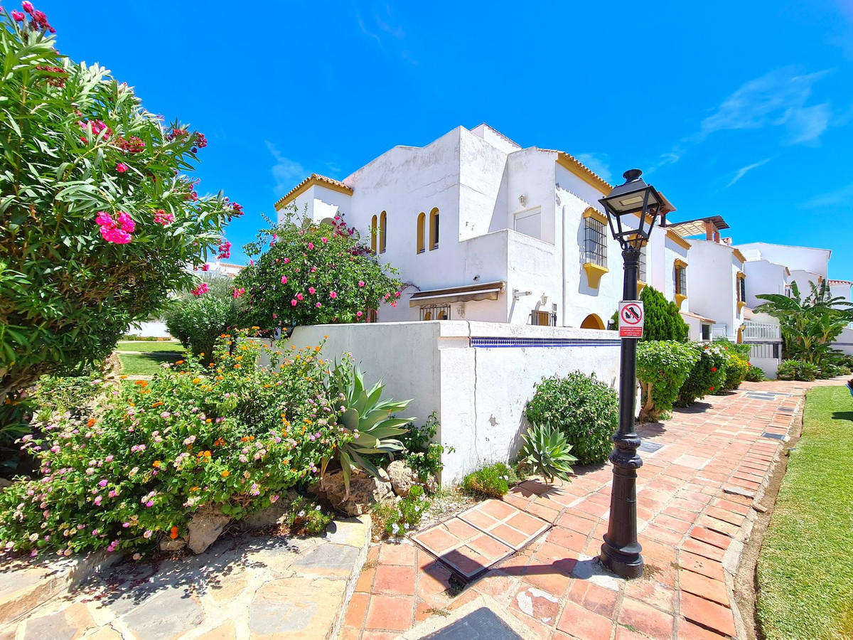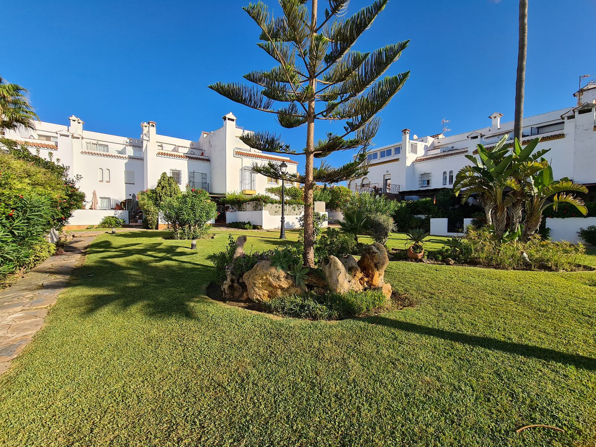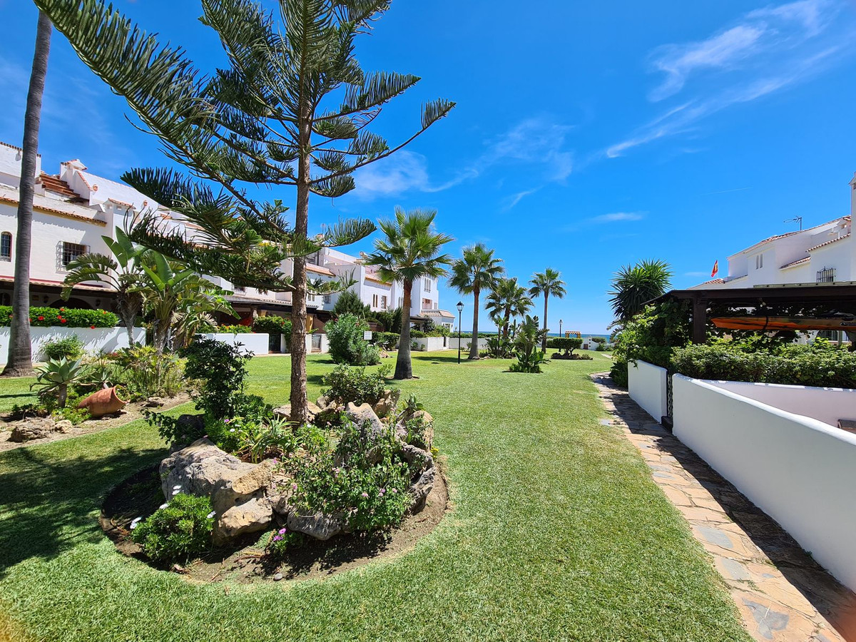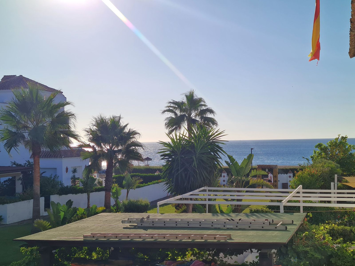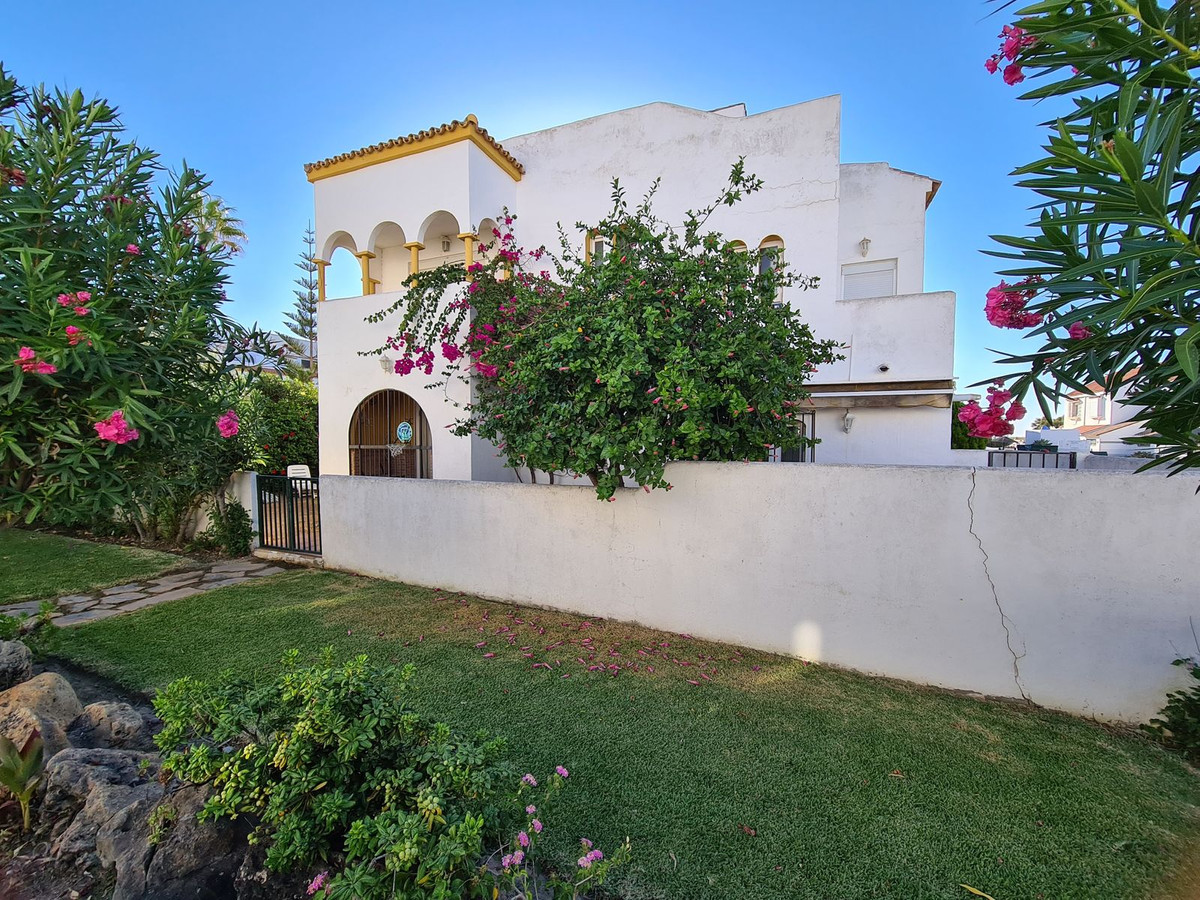 Excellently located in a beachfront development with access to the Coastal Path that connects the entire Costa del Sol, and the beach is just steps away. Close to supermarkets, shops, restaurants, and a wide variety of leisure options, Sabinillas is just a 2-minute drive away and Estepona is 10 minutes away, while Malaga Airport is a 90-minute drive away. The property is spread over two floors plus the solarium. On the ground floor, we find the main entrance with a spacious hall, a toilet with a window, a large kitchen with access to the rear terrace, and a large living-dining room with a fireplace and access to a porch that connects to the large private garden. The first floor houses the house's three bedrooms, each with its own private terrace and built-in wardrobes. It also has a spacious full bathroom equipped with a bathtub and a large window. The master bedroom has an en-suite bathroom equipped with a bathtub and a large window, as well as a beautiful private covered terrace. On the upper floor, we have a turret, a storage room, and a large solarium with views of the sea, gardens, and the pool. This well-maintained complex offers swimming pools, gardens, and beach access. A GREAT OPPORTUNITY TO EXPERIENCE THE LUXURY OF HAVING YOUR OWN HOME JUST STEPS FROM THE SEA!