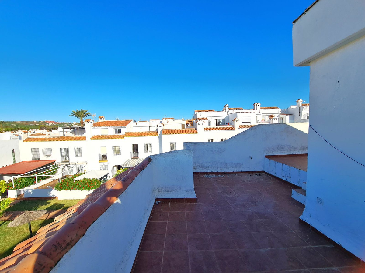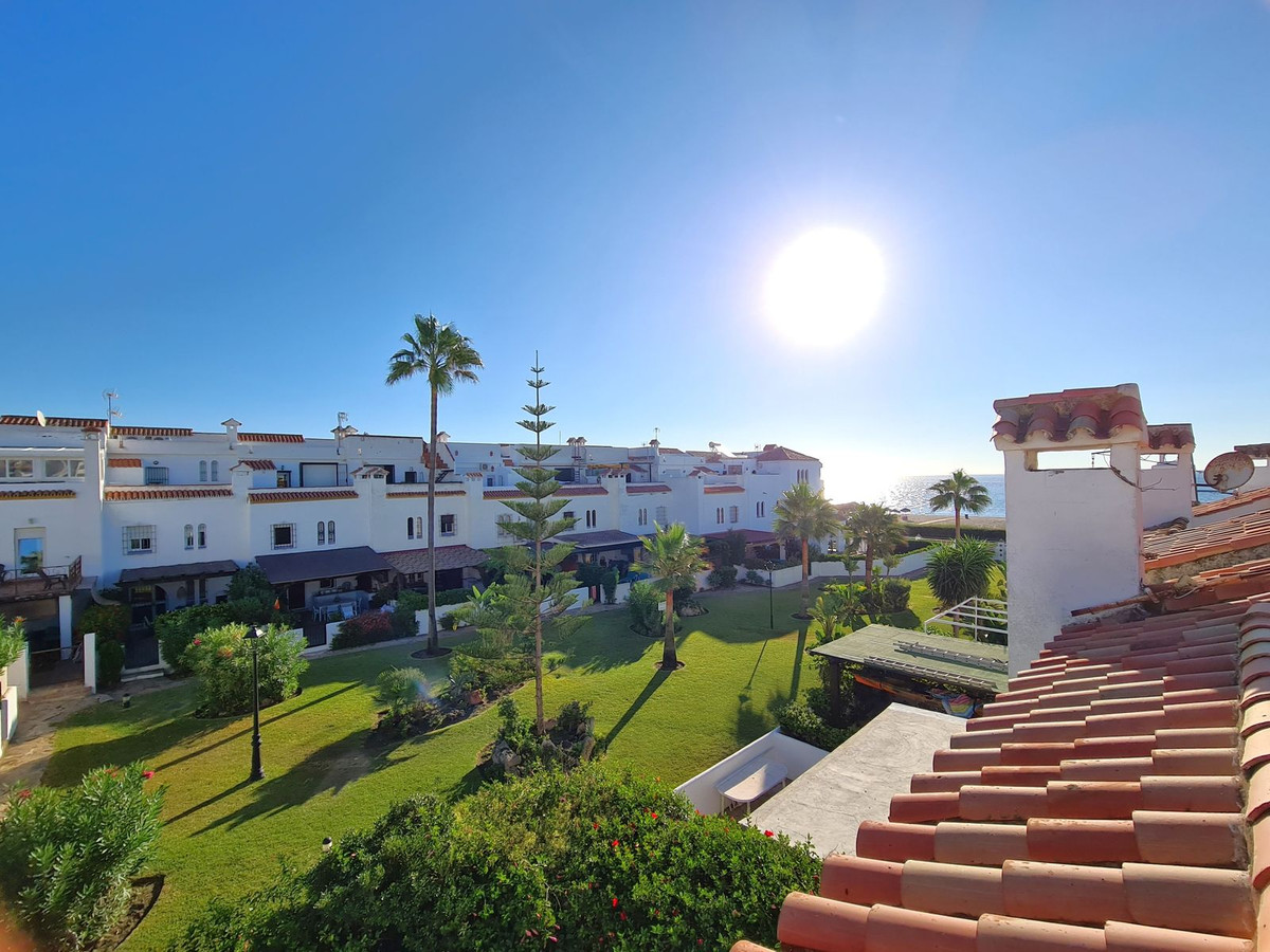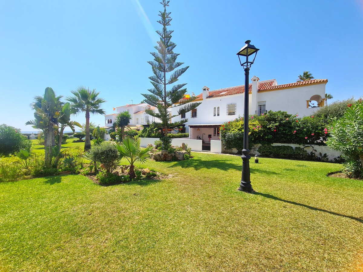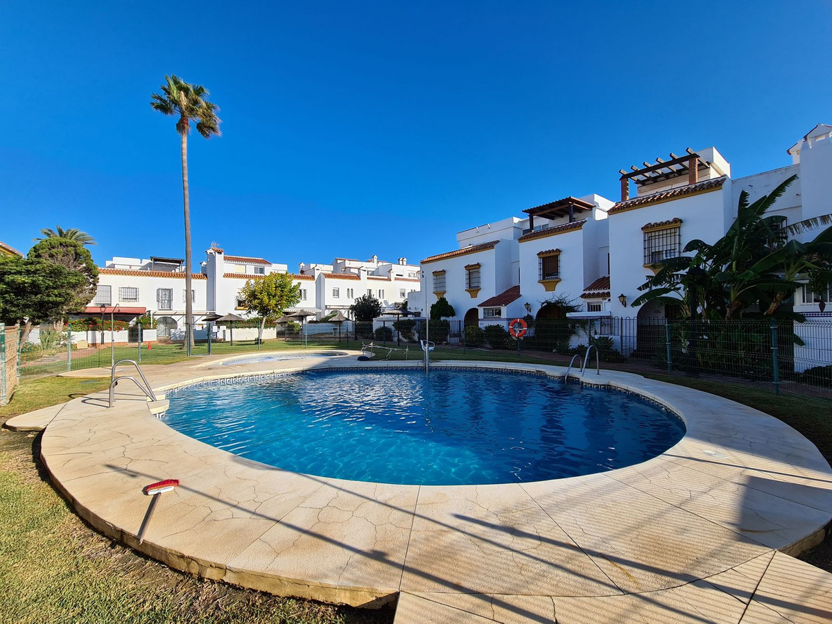 Excellently located in a beachfront development with access to the Coastal Path that connects the entire Costa del Sol, and the beach is just steps away. Close to supermarkets, shops, restaurants, and a wide variety of leisure options, Sabinillas is just a 2-minute drive away and Estepona is 10 minutes away, while Malaga Airport is a 90-minute drive away. The property is spread over two floors plus the solarium. On the ground floor, we find the main entrance with a spacious hall, a toilet with a window, a large kitchen with access to the rear terrace, and a large living-dining room with a fireplace and access to a porch that connects to the large private garden. The first floor houses the house's three bedrooms, each with its own private terrace and built-in wardrobes. It also has a spacious full bathroom equipped with a bathtub and a large window. The master bedroom has an en-suite bathroom equipped with a bathtub and a large window, as well as a beautiful private covered terrace. On the upper floor, we have a turret, a storage room, and a large solarium with views of the sea, gardens, and the pool. This well-maintained complex offers swimming pools, gardens, and beach access. A GREAT OPPORTUNITY TO EXPERIENCE THE LUXURY OF HAVING YOUR OWN HOME JUST STEPS FROM THE SEA!