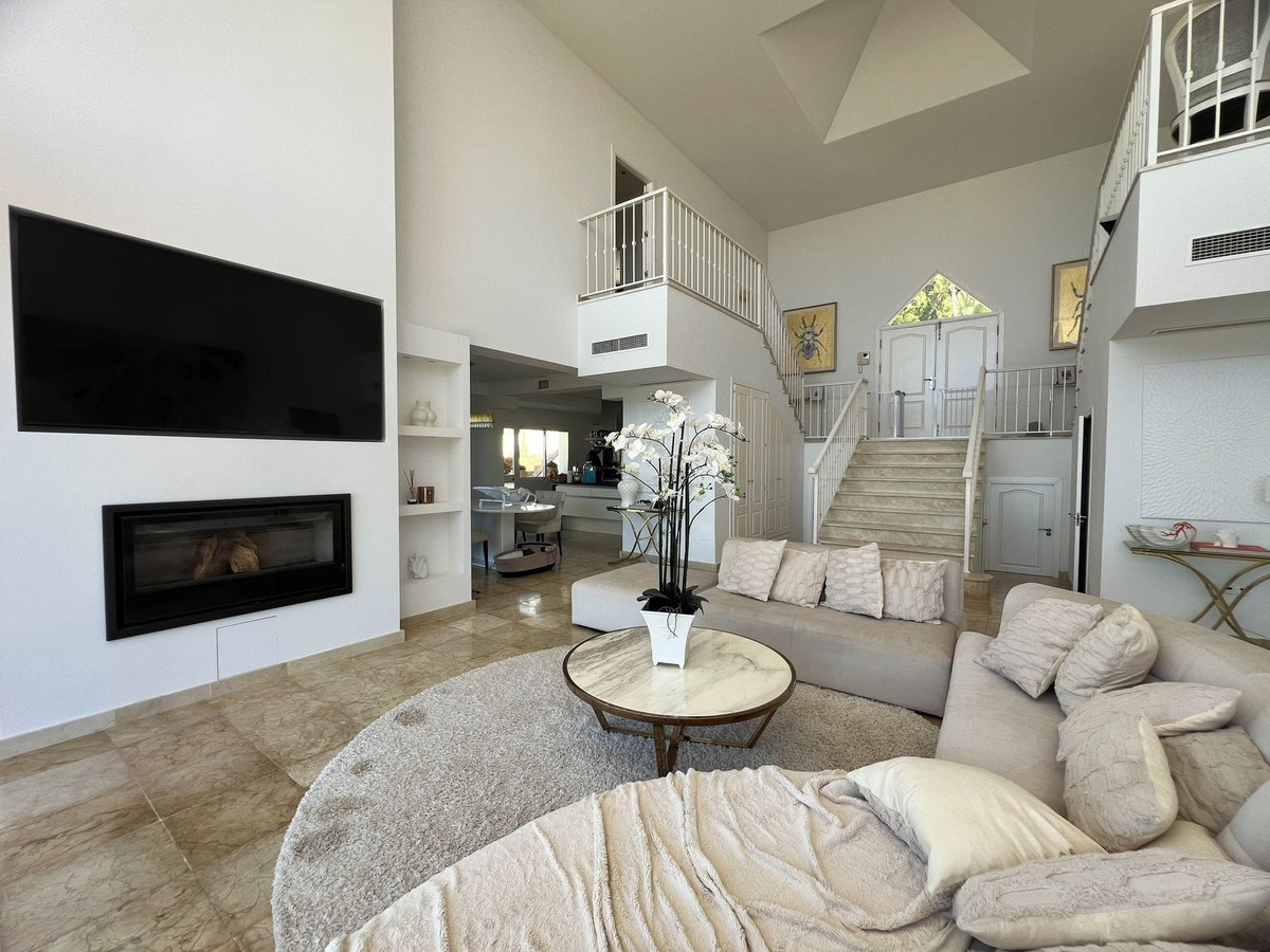 With 349 m² built, this villa impresses from the moment you step in: a stunning living room with 6-meter-high ceilings, expansive windows, and exceptional natural light that enhances its elegance and spaciousness.
