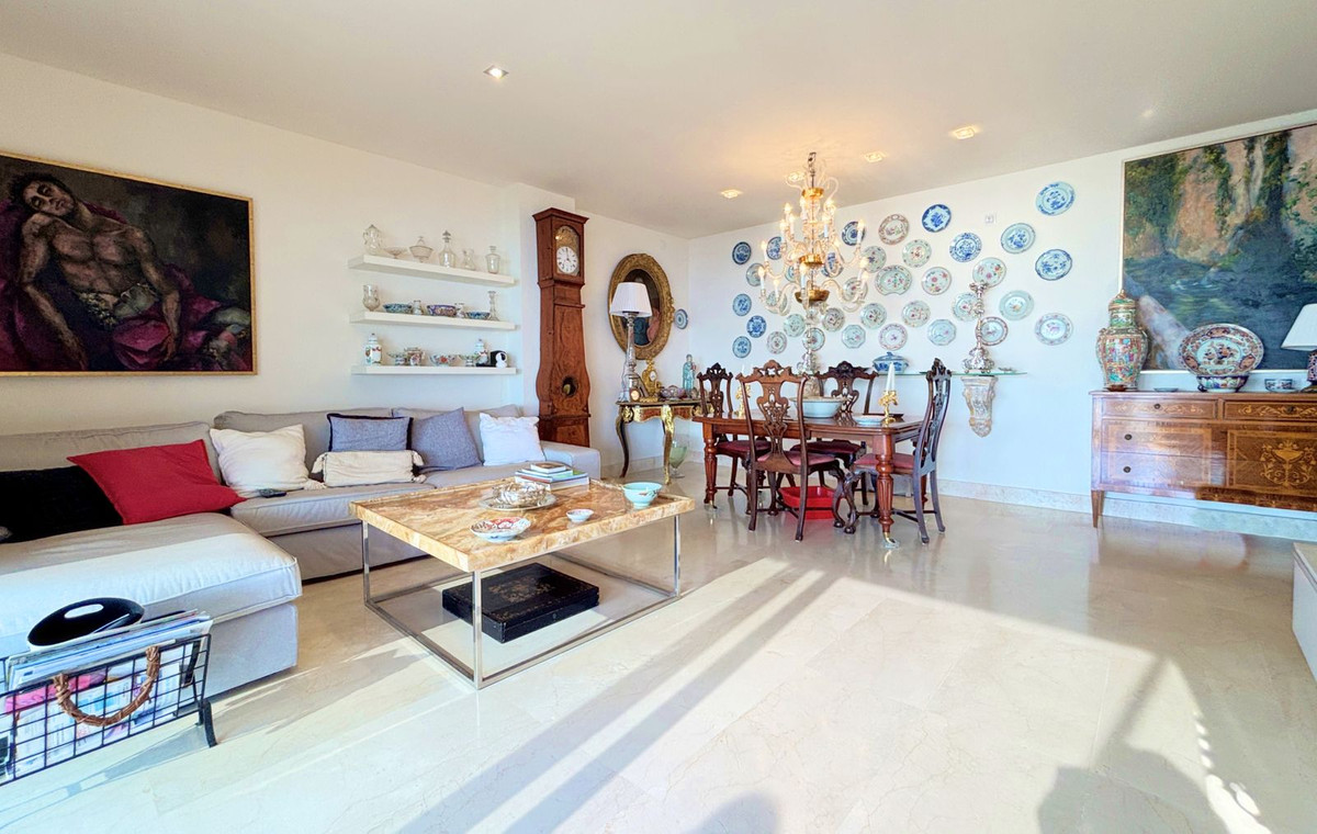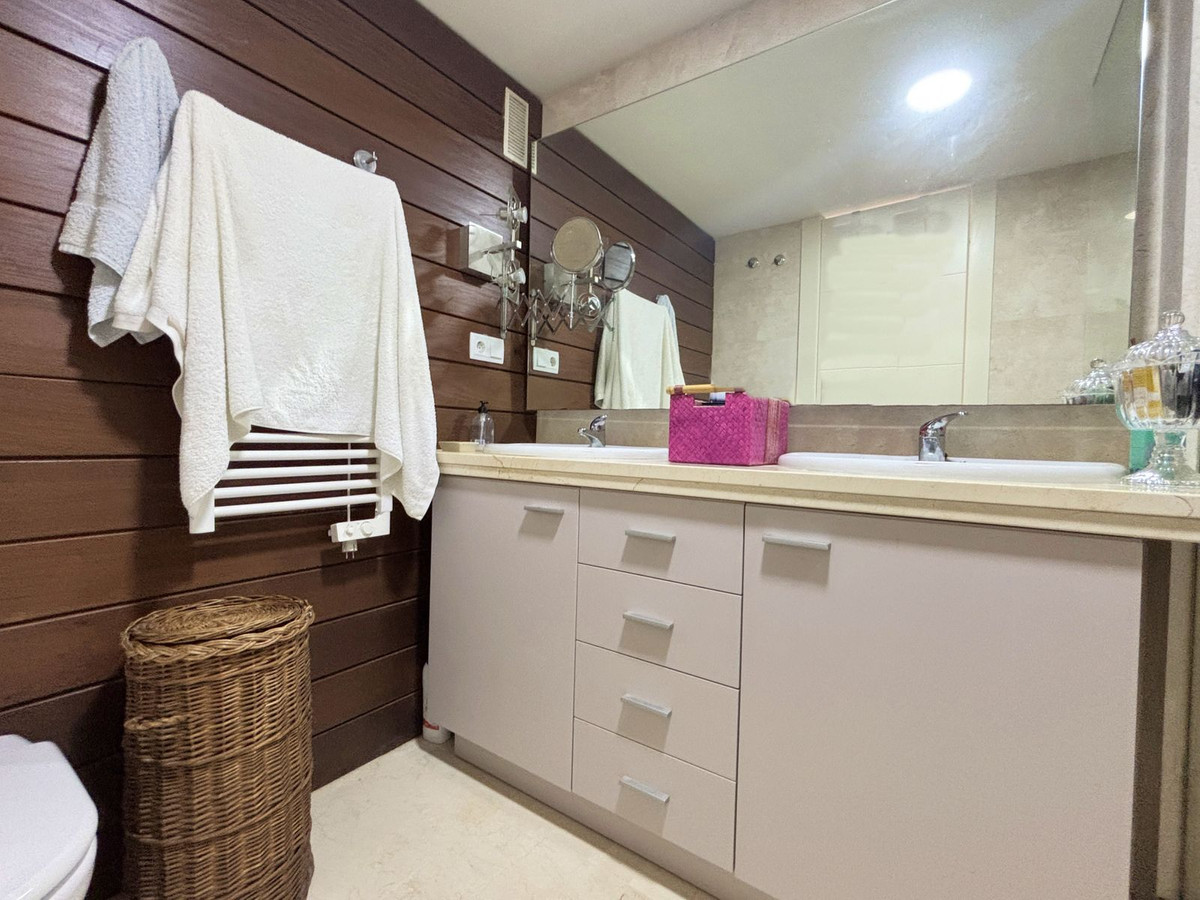 PENTHOUSE WITH SPECTACULAR PANORAMIC SEA VIEWS IN A PRIVATE GATED COMMUNITY BETWEEN SOTOGRANDE AND PUERTO DE LA DUQUESA.Privileged location in a beautiful private urbanization with 24-hour security, surrounded by peace, safety, and just 5 minutes from Puerto de la Duquesa and all essential services. Set within a meticulously maintained community offering extensive common areas, including an outdoor swimming pool, indoor heated pool, and a social area for events and gatherings. This sophisticated property, built with excellent quality finishes, features three spacious bedrooms and three bathrooms, one of them en suite, an independent kitchen with laundry area, and an elegant living room that opens onto a spectacular 32 m² terrace with breathtaking panoramic sea views — perfect for enjoying the Mediterranean climate year-round. With its excellent orientation, the apartment is bright and welcoming, making it ideal both as a permanent residence and as a high-yield investment. Double-glazed windows, shutters, a private parking space, and a storage room are all included in the price. An irresistible penthouse that perfectly combines comfort, style, and an unbeatable location.